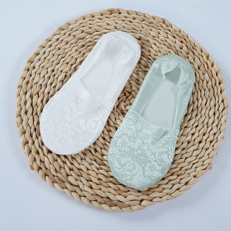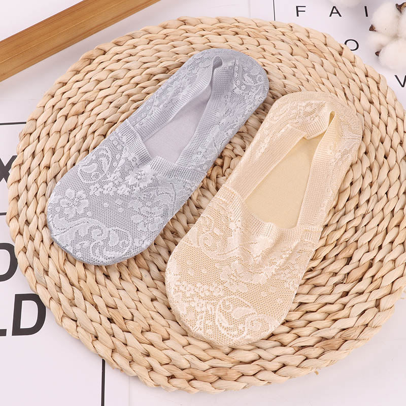 1/2 Pairs Fashion Women Girls Summer Socks Style Lace Flower No Show Short Sock Antiskid Invisible Ankle 2021 Sox Sock Slippers