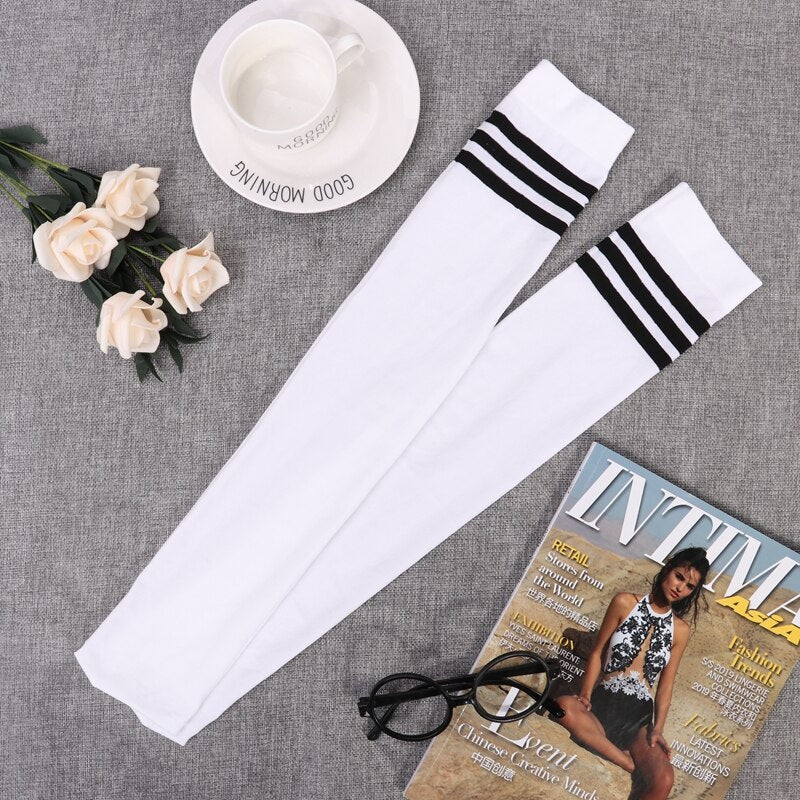 1 Pair Stripe Stockings Girls Women Over Knee Thigh High Over The Knee Socks for Ladies Sexy Warm Knee Socks Black White