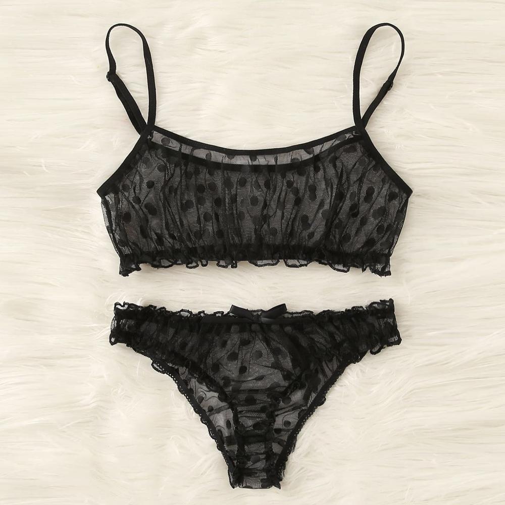 2019 Fashion Spring New Women Sexy Mesh Bra Set Bowknot Solid Soft Underpants Sleepwear Ladies Lingerie Set Wine femme mujer