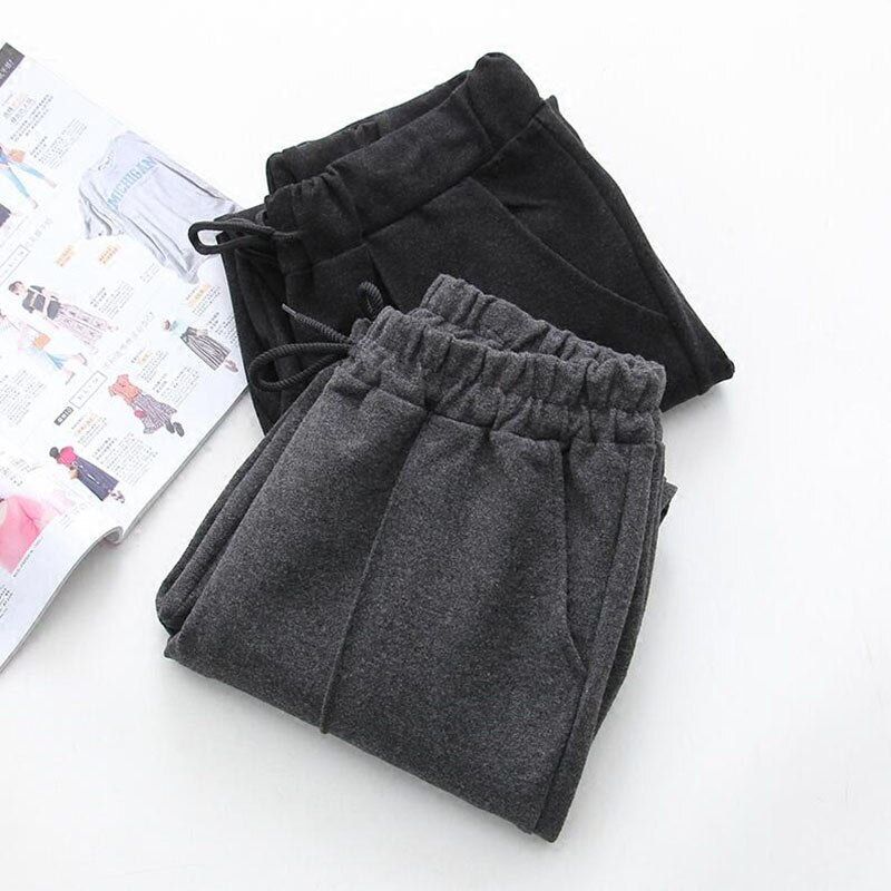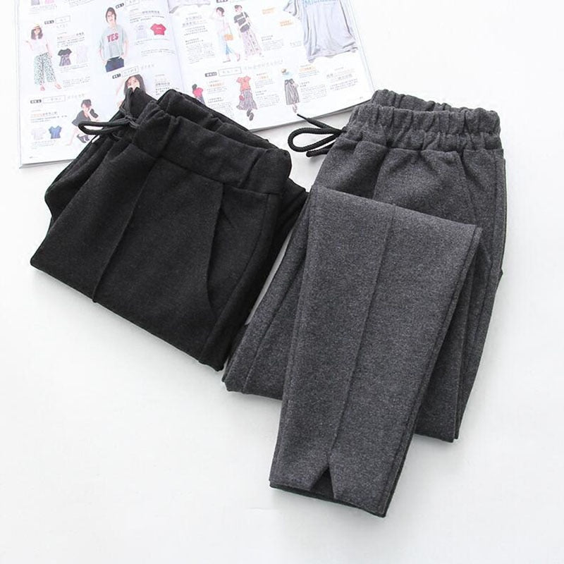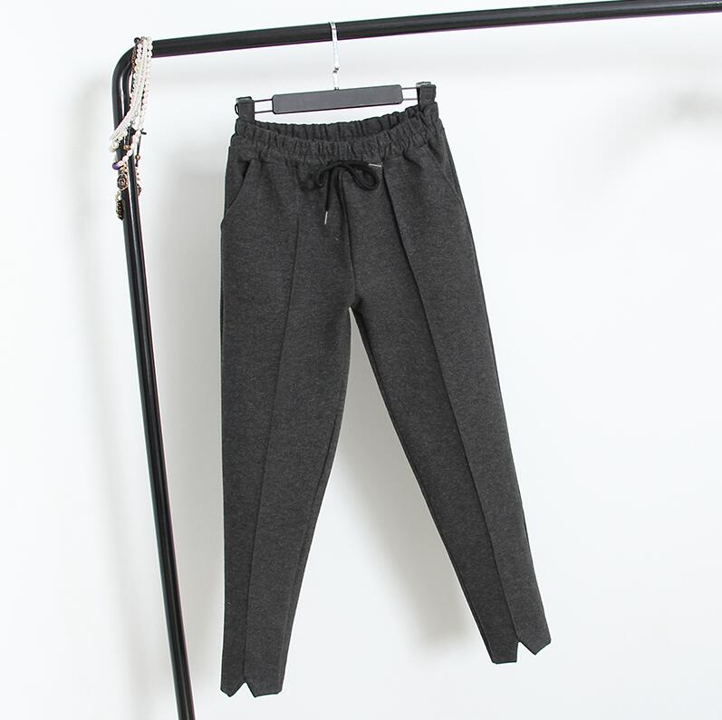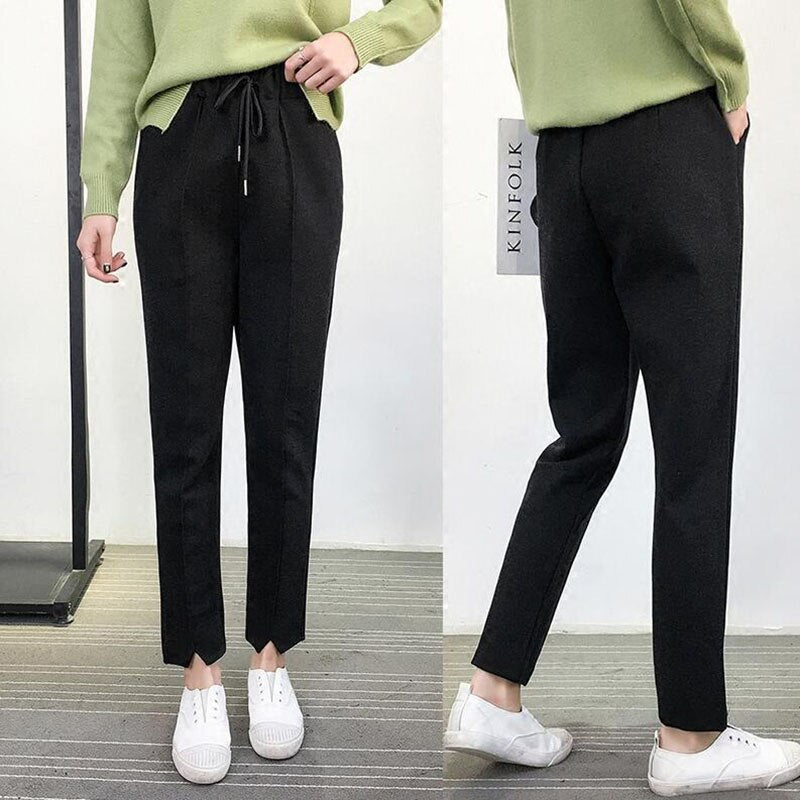2020 Autumn New Women Woolen Harem Pants Female Plus Size Casual Trousers Elastic waist Black Pant Winter Ankle-Length Pants