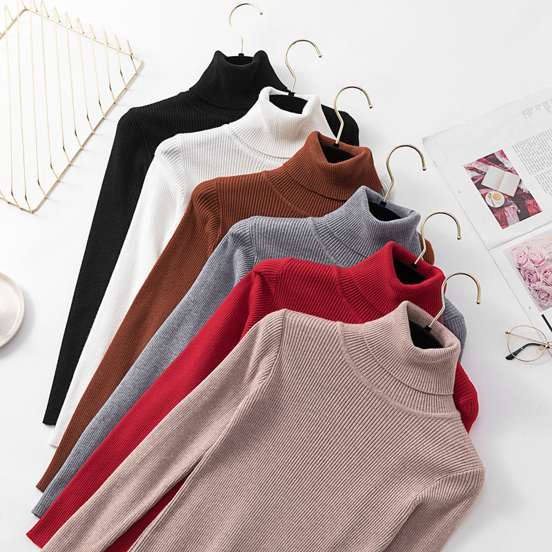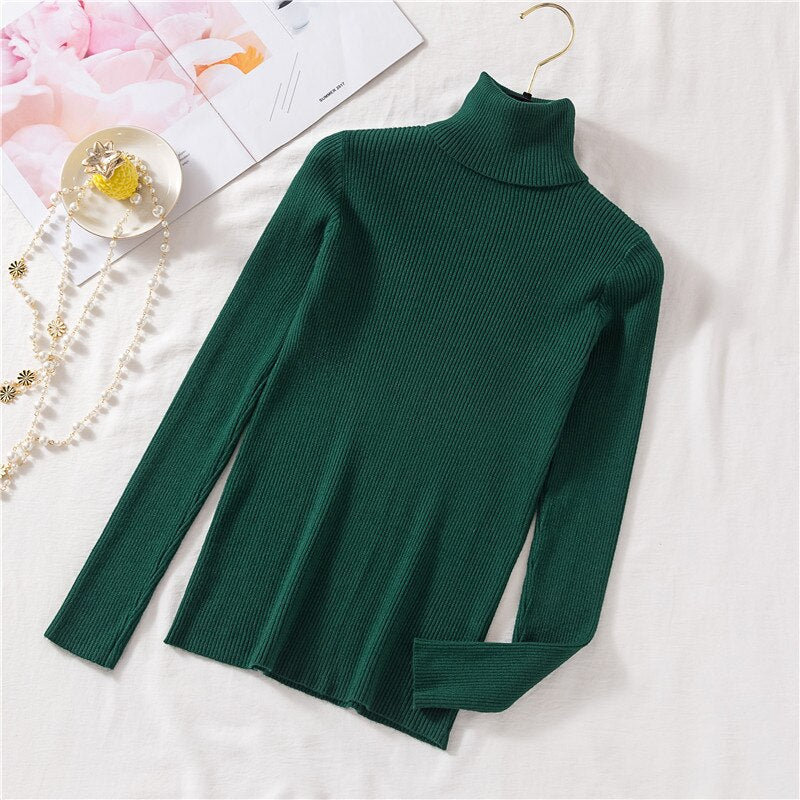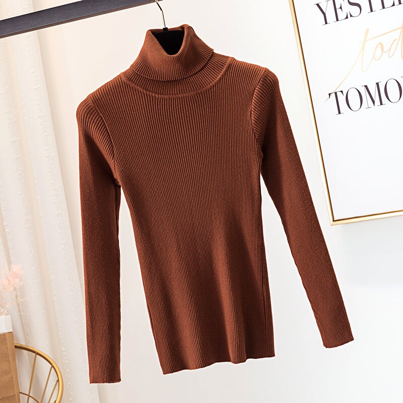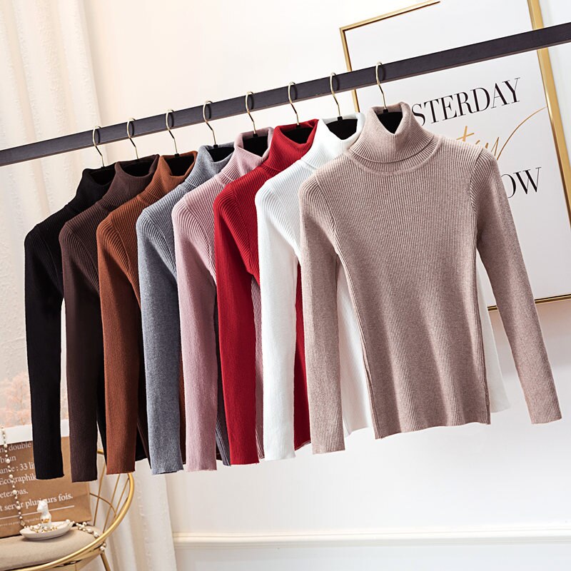 2020 Autumn Winter Thick Sweater Women Knitted Ribbed Pullover Sweater Long Sleeve Turtleneck Slim Jumper Soft Warm Pull Femme