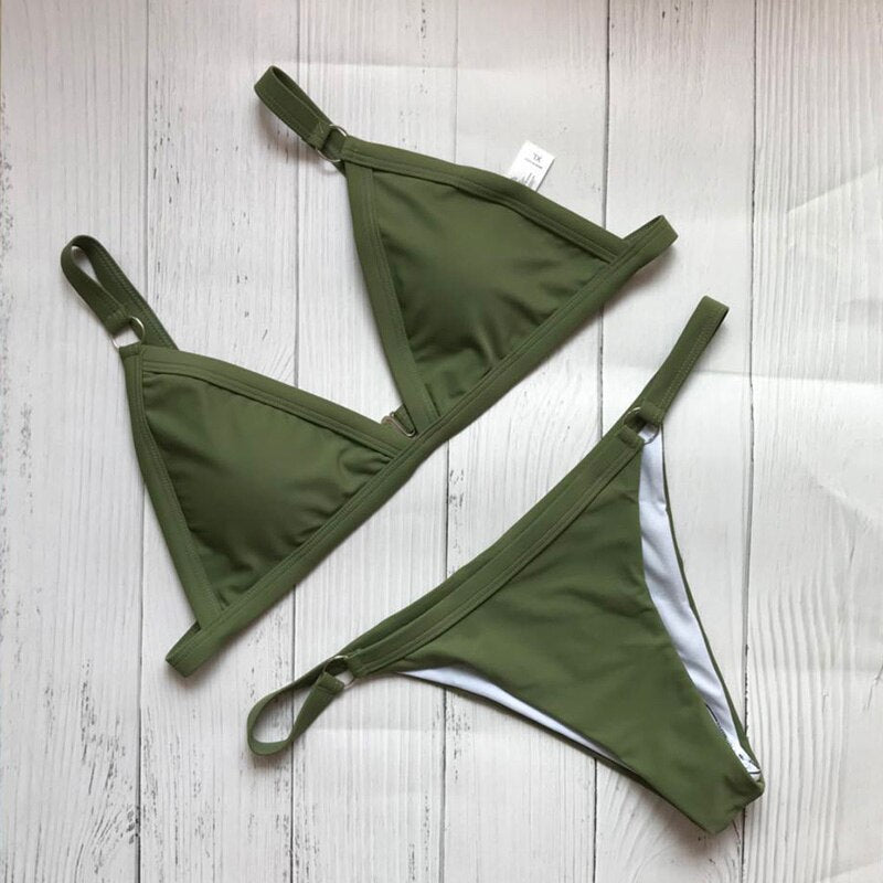 2020 Brand Triangle Bikini Set Swimwear Women Solid Swimsuit Women's Swimming Suit Bathing Suit Bodysuits Sexy Bikini Padded S-L