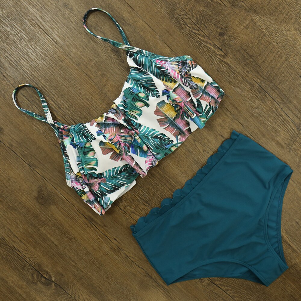 2020 New Sexy High Waist Bikini Set Female Ruffle Bandeau Swimsuit Women Swimwear Push Up Swim Bathing Suit Beach Wear Biquini
