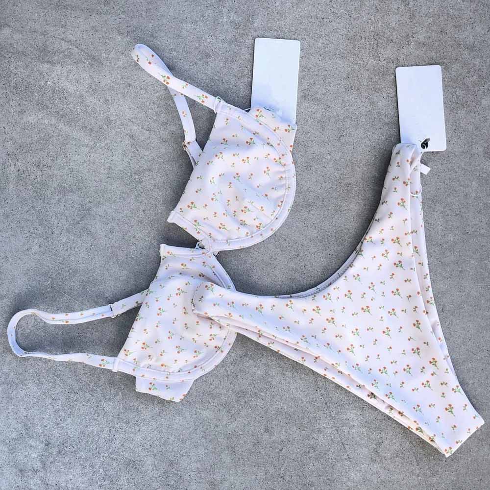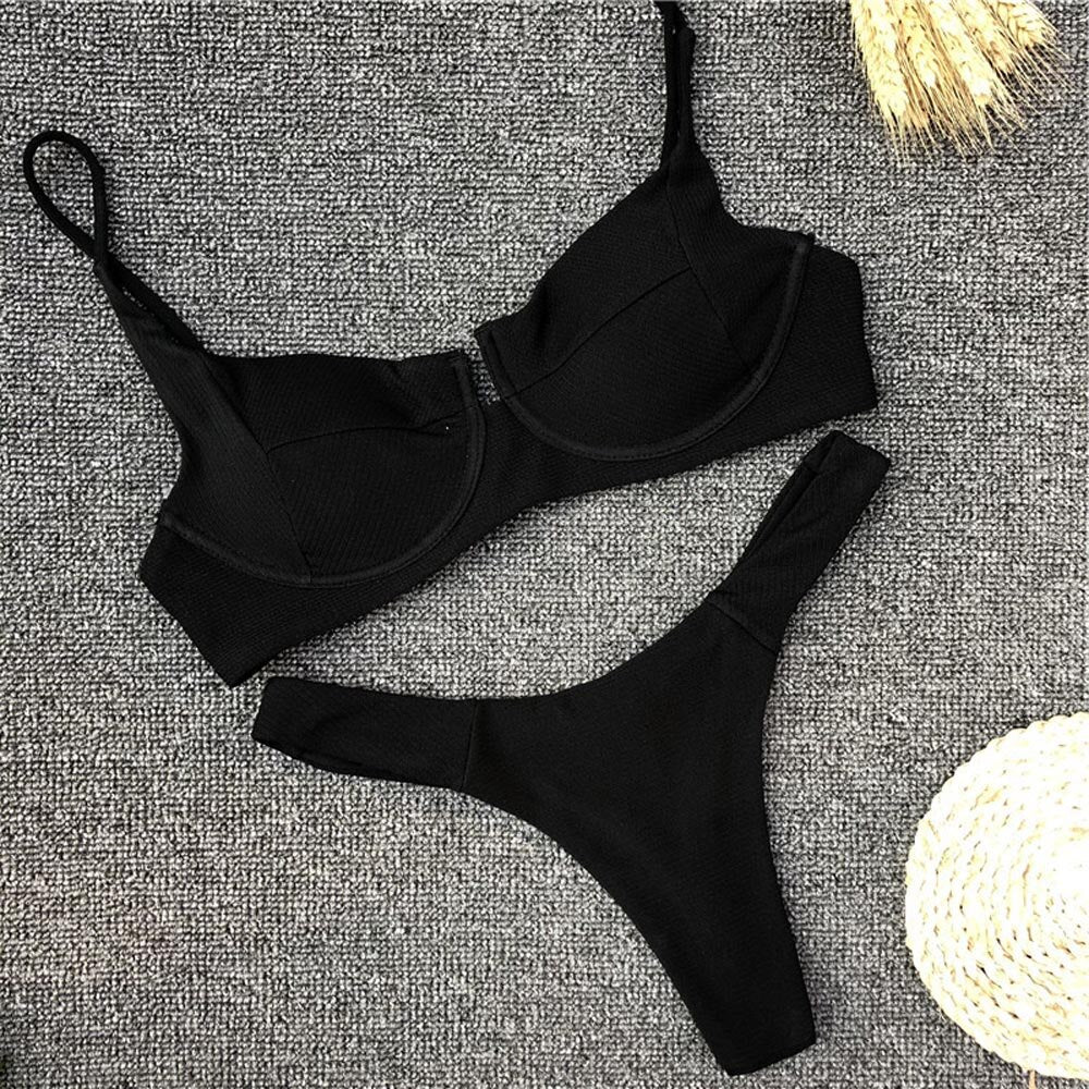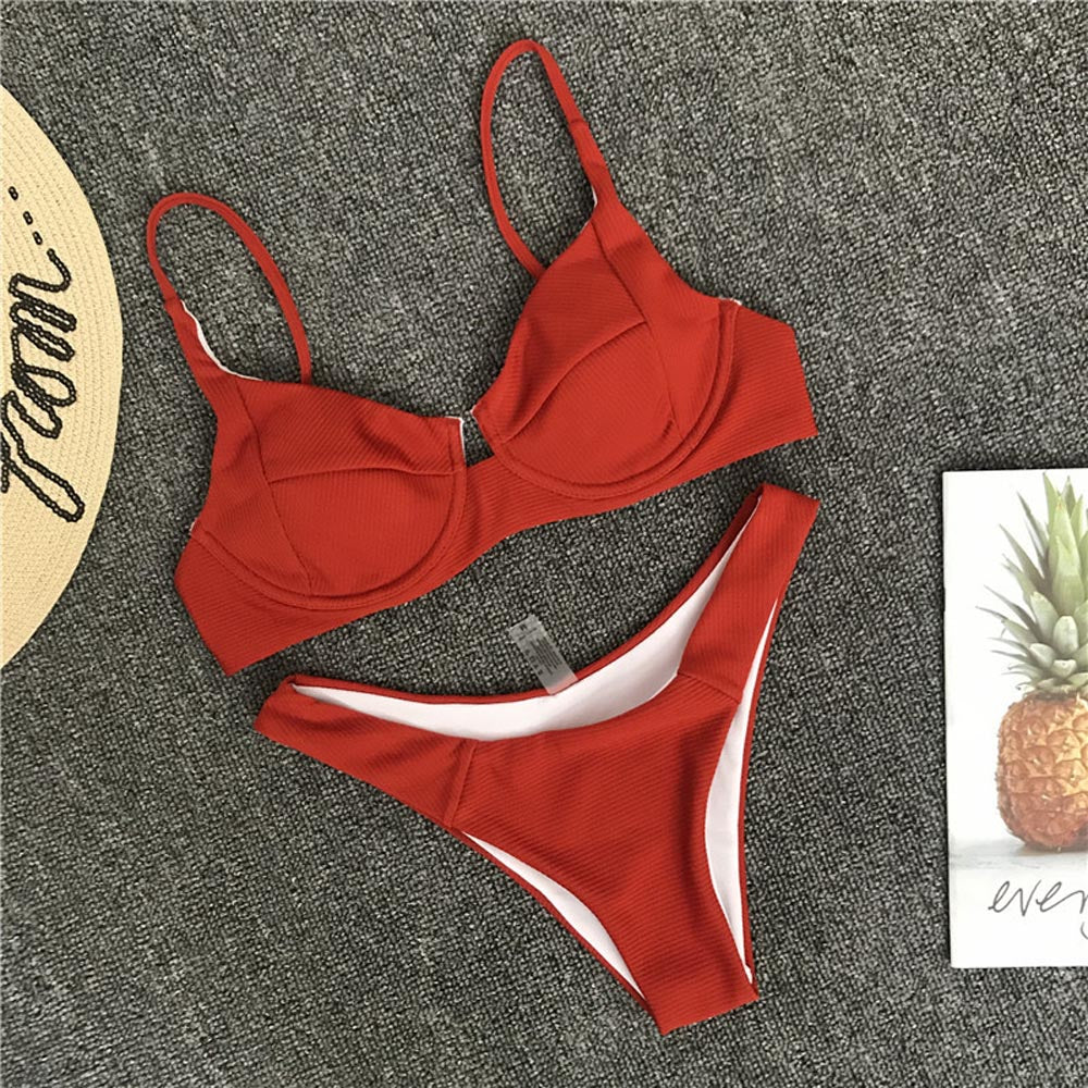 2020 Underwired Bikini Women V Neck Swimwear Female Dot Swimsuit High Cut  Bikini set Ribbed Bather Bathing Suit Swim Wear 5305