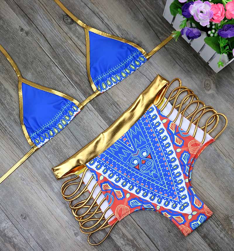 2021 New African Print Two-Pieces Bath Suits Bikini Set Sexy Geometric Swimwear Swimsuit Gold High Waist Swimming Suit