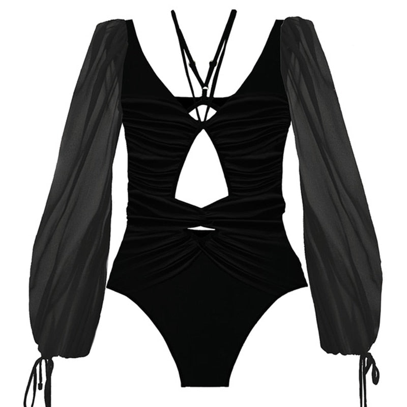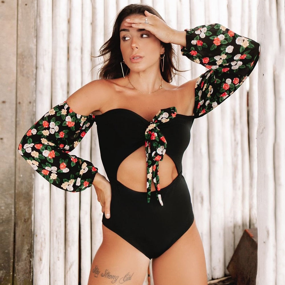 2021 New One Piece Swimsuit Print Retro Long Sleeve Swimwear Women Bandage Floral Bathing Suits Strappy Backless Beach Wear