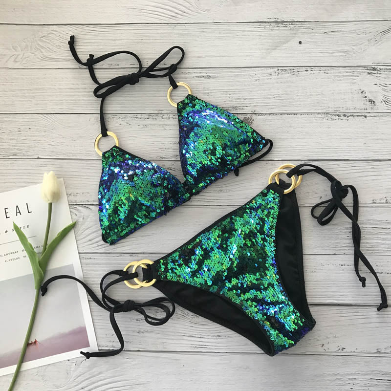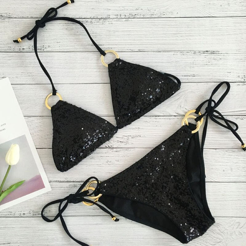 2021 New Sexy Bikinis Sequins Golden Color Women Bandage Bikini Set Push-up Padded Bra Swimsuit Suit Swimwear 2570