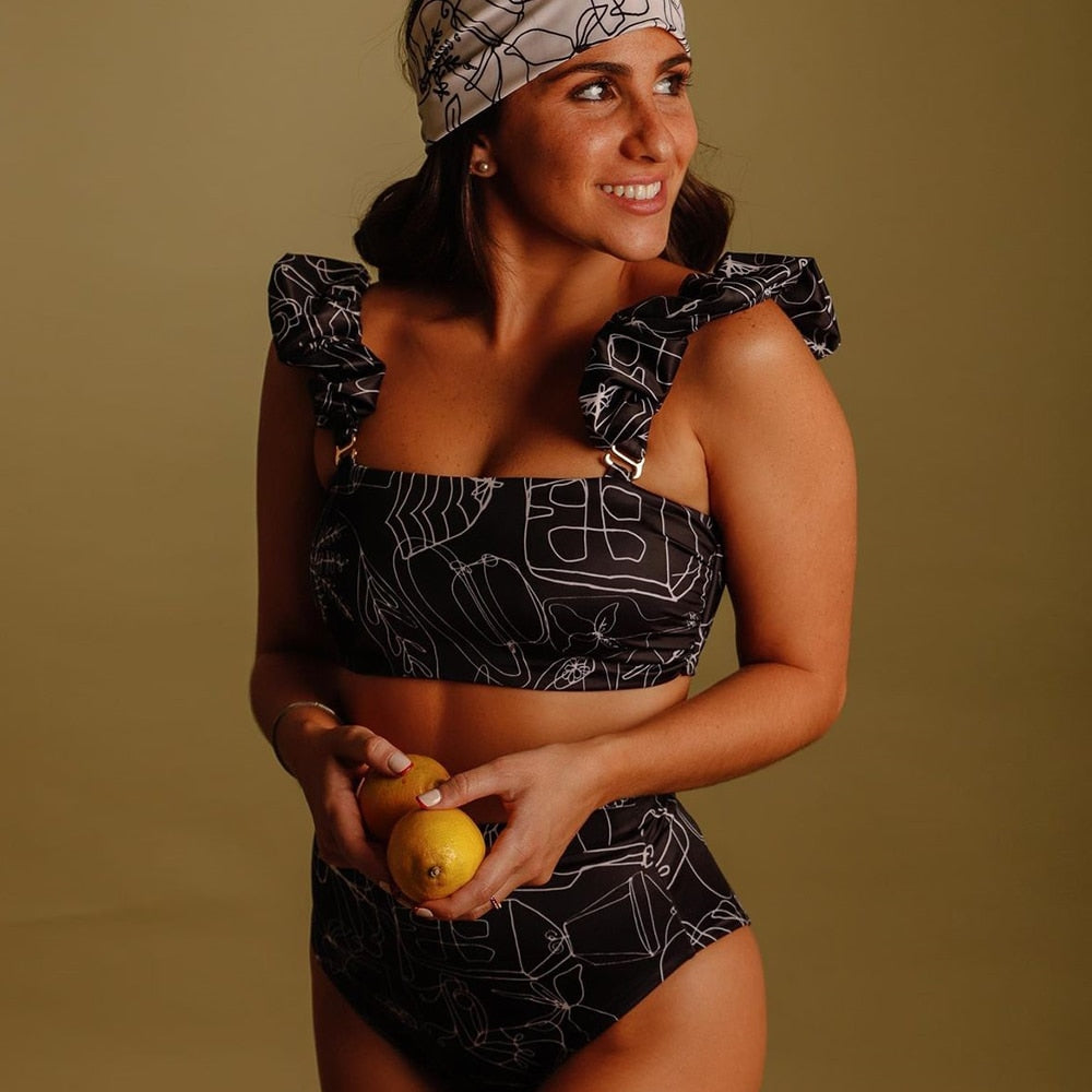 2021 New Sexy High Waist Bikini Set Bandeau Swimwear Women Print Floral Ruffle Bandage Swimsuit Bathing Suit Beach Wear biquini