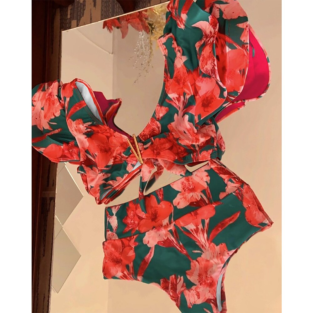 2021 New Sexy High Waist Bikini Set Swimwear Women Swimsuit Push Up Print Brazilian Bathing Suit Beach Wear Swimming biquini