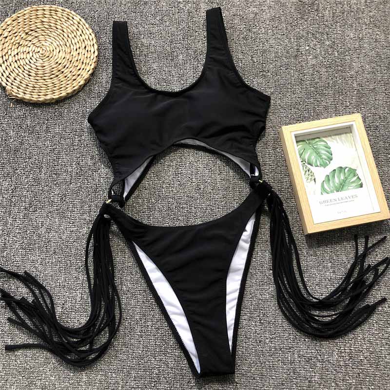 2021 New Sexy Leopard Swimwear Tummy Cut Out One Piece Swimsuit Female Tassel Bather Hollow Out Bathing Suit Swim Wear Lady 3880