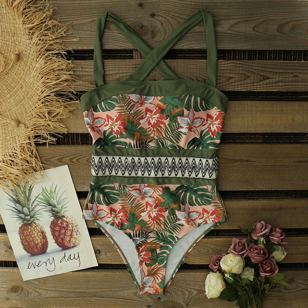 2021 New Sexy One Piece Retro Halter Swimsuit Female Floral Swimwear Women Push Up Bathing Suit Beach Wear Vintage Monokini