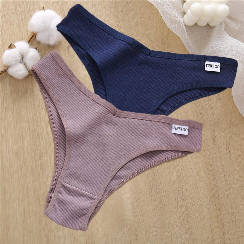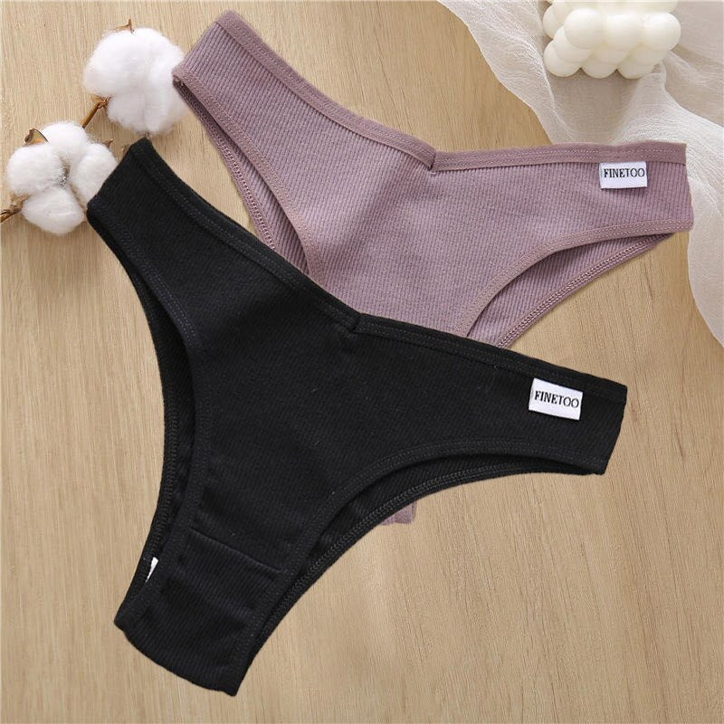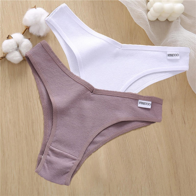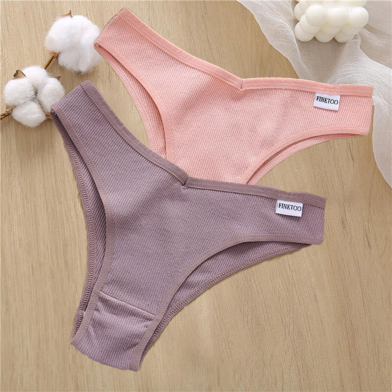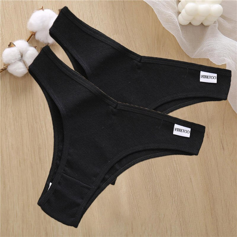 2PCS/Set Sexy Lingerie Cotton Panties Women Underwear Briefs Female Underpants Pantys Tangas Thong Panties Bikini Solid Color