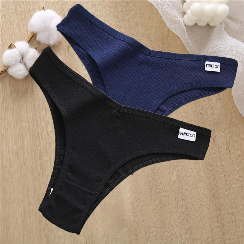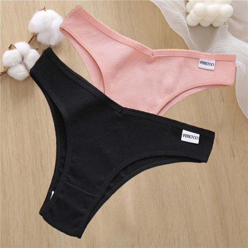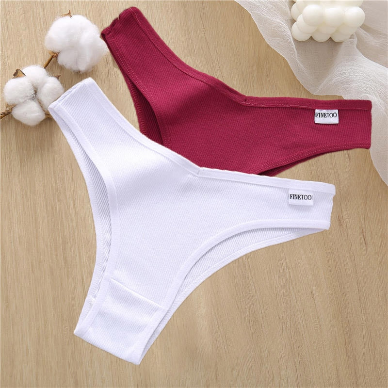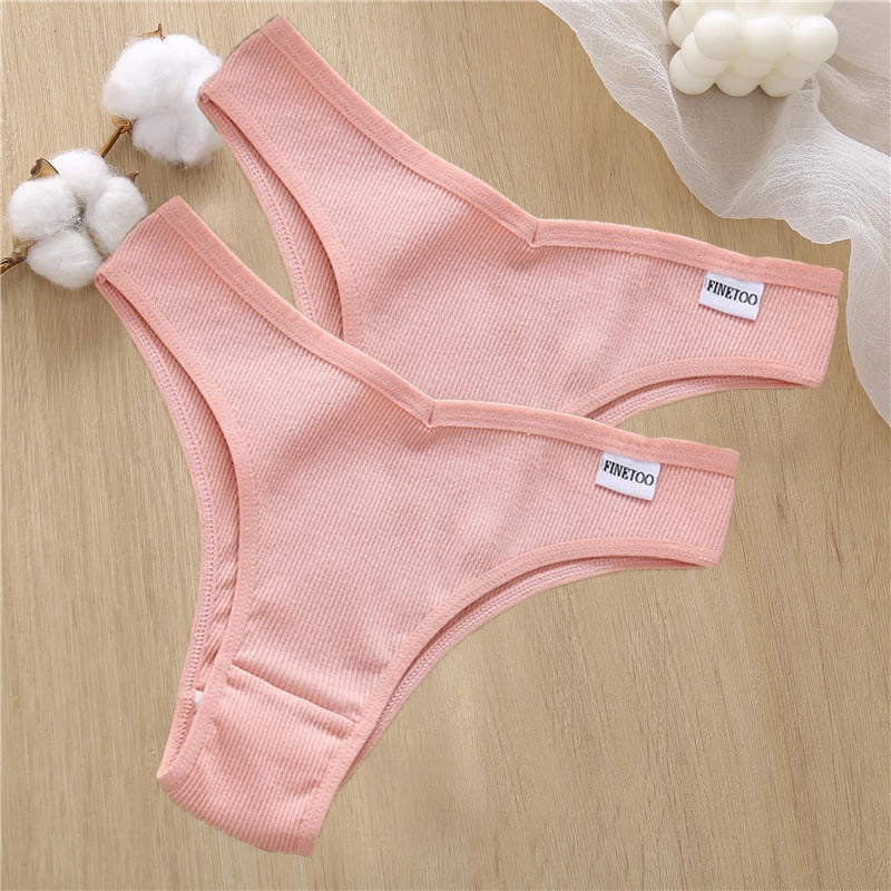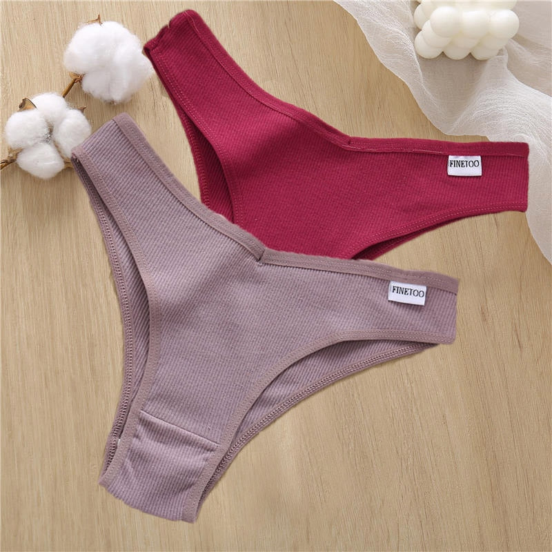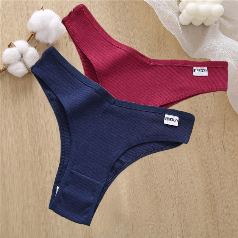 2PCS/Set Sexy Lingerie Cotton Panties Women Underwear Briefs Female Underpants Pantys Tangas Thong Panties Bikini Solid Color