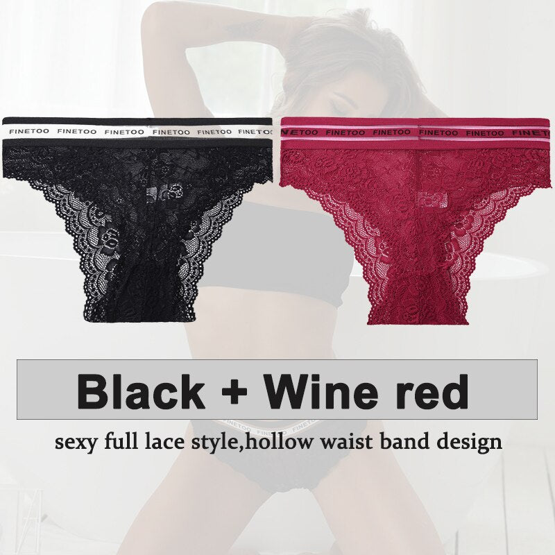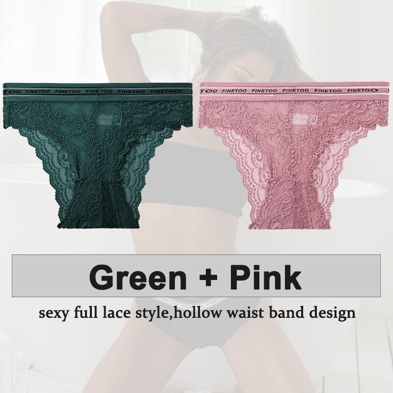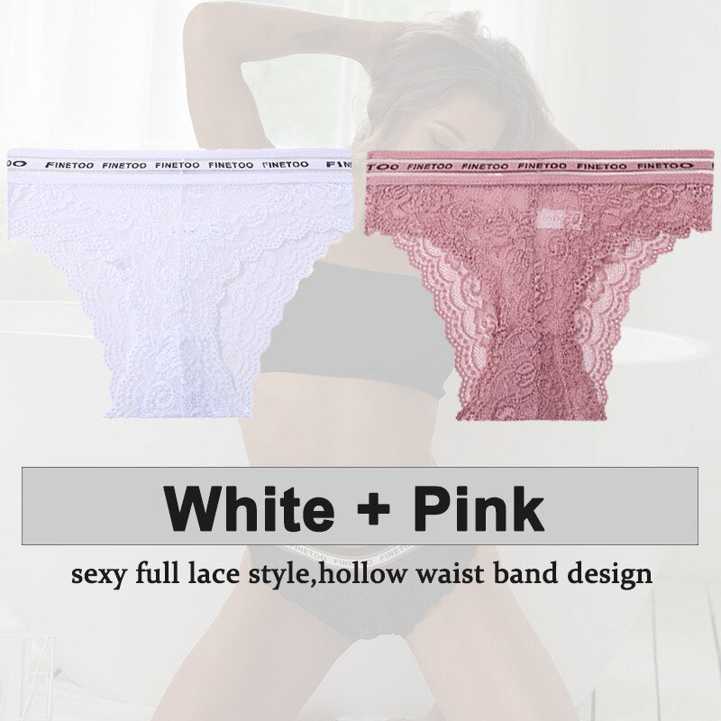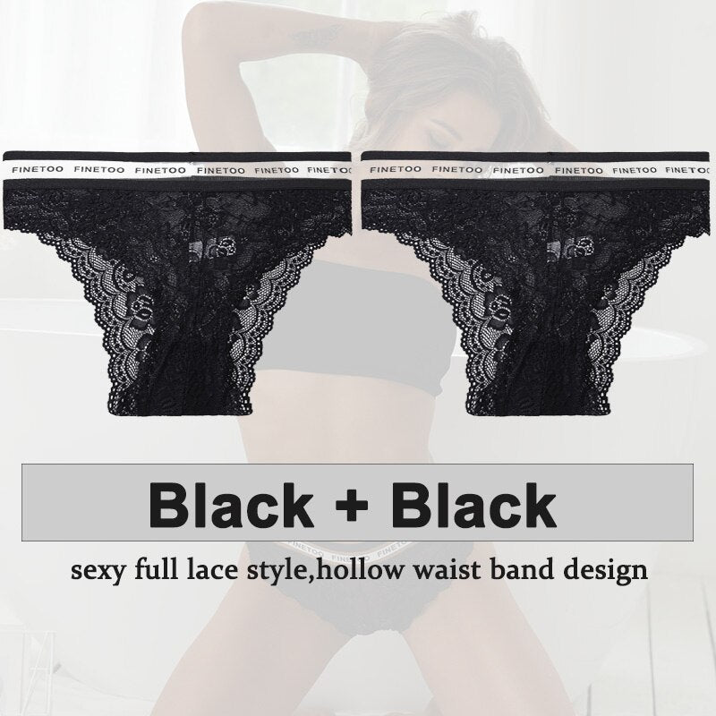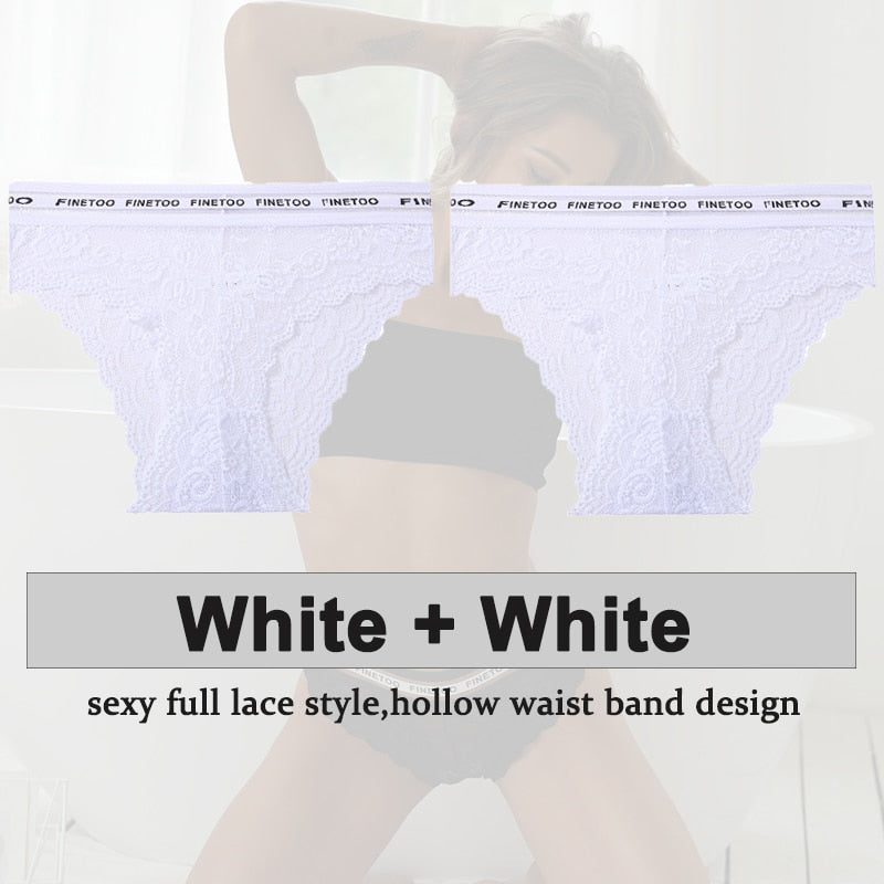 2PCS/Set Underwear Lace Panties Women's Lingerie Sexy Panties Female Underpants Floral Lace Perspective Waist Band Briefs Panty