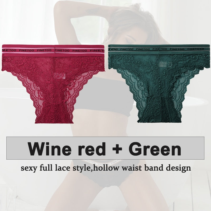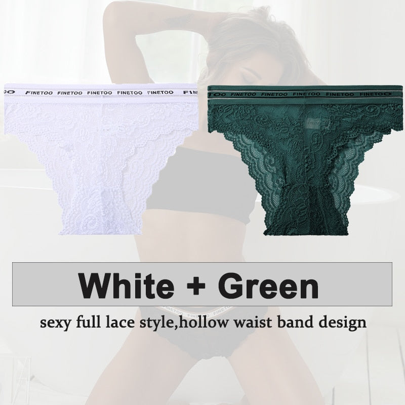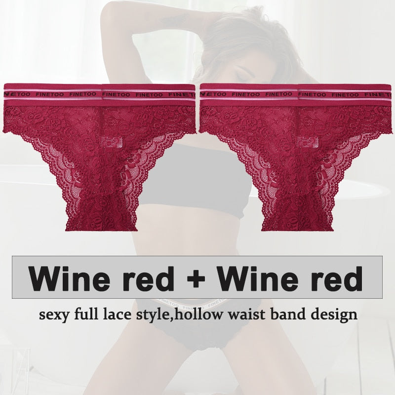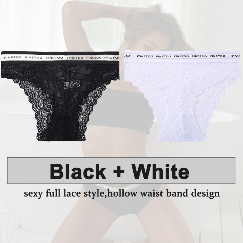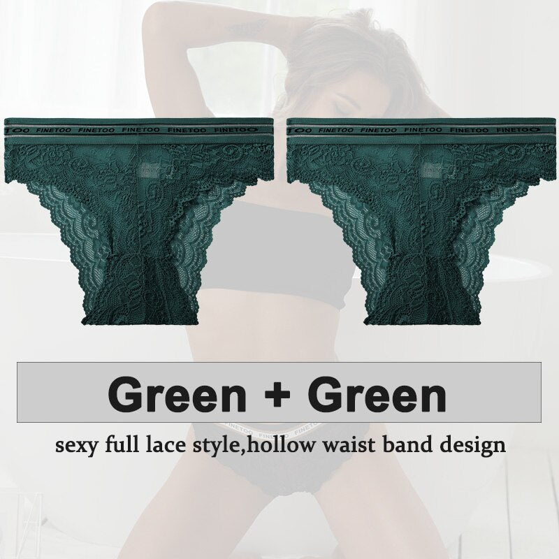 2PCS/Set Underwear Lace Panties Women's Lingerie Sexy Panties Female Underpants Floral Lace Perspective Waist Band Briefs Panty