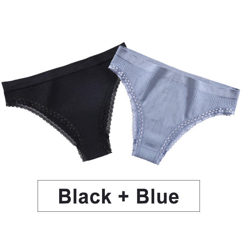2PCS/Set Women Panties Sexy Lingerie Lace Underwear Female Underpants Solid Color Bikini Panties Seamless Briefs for Woman Girls