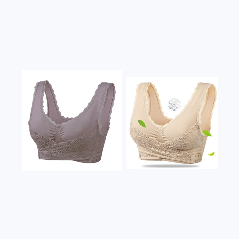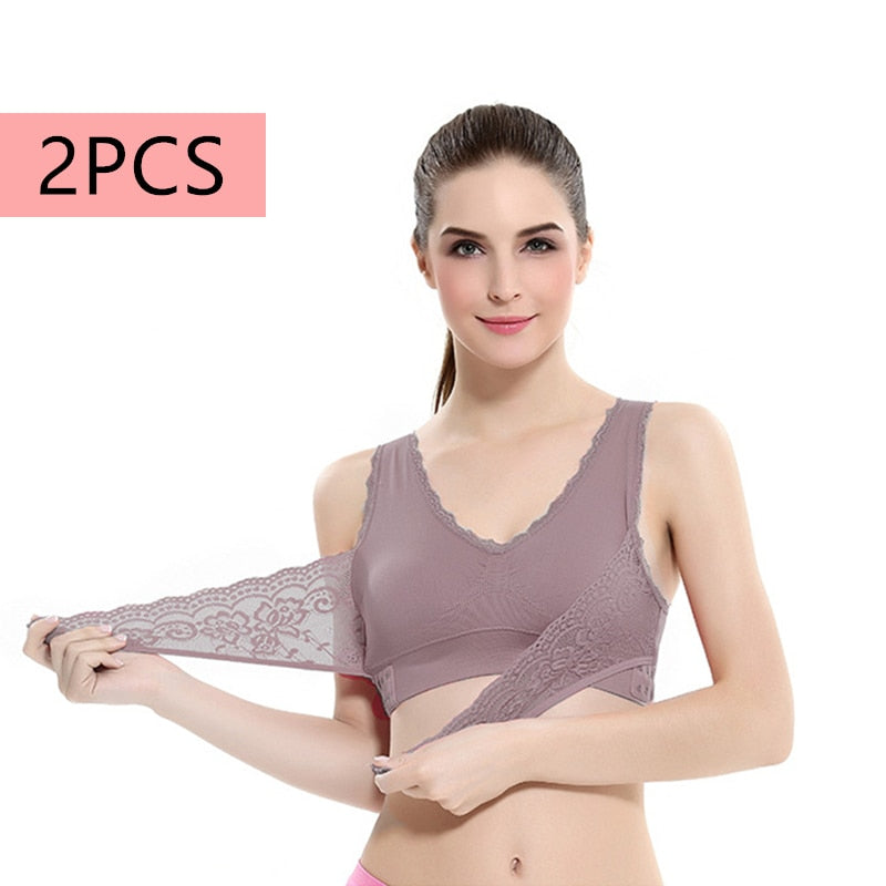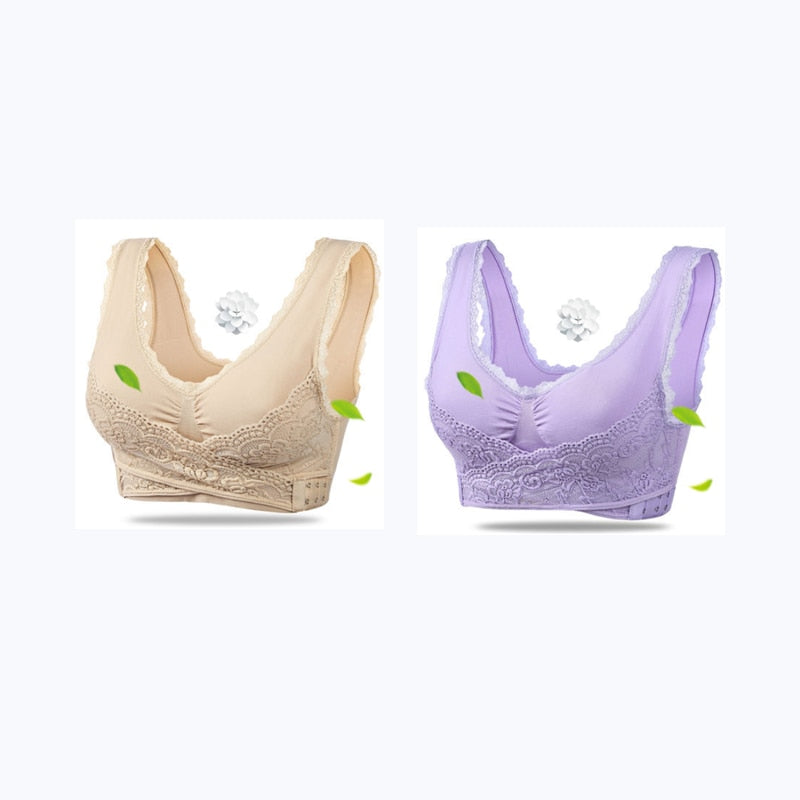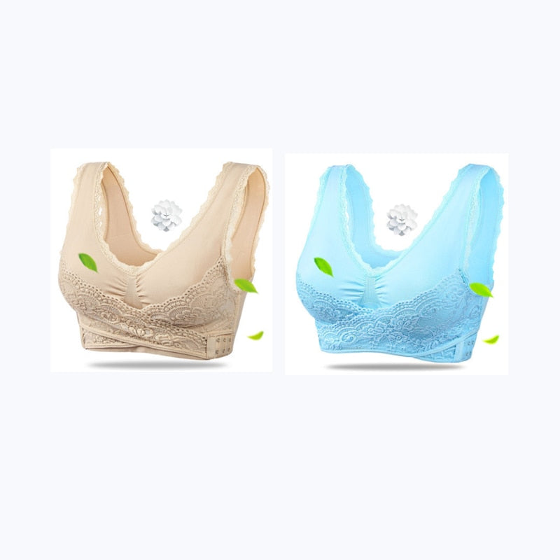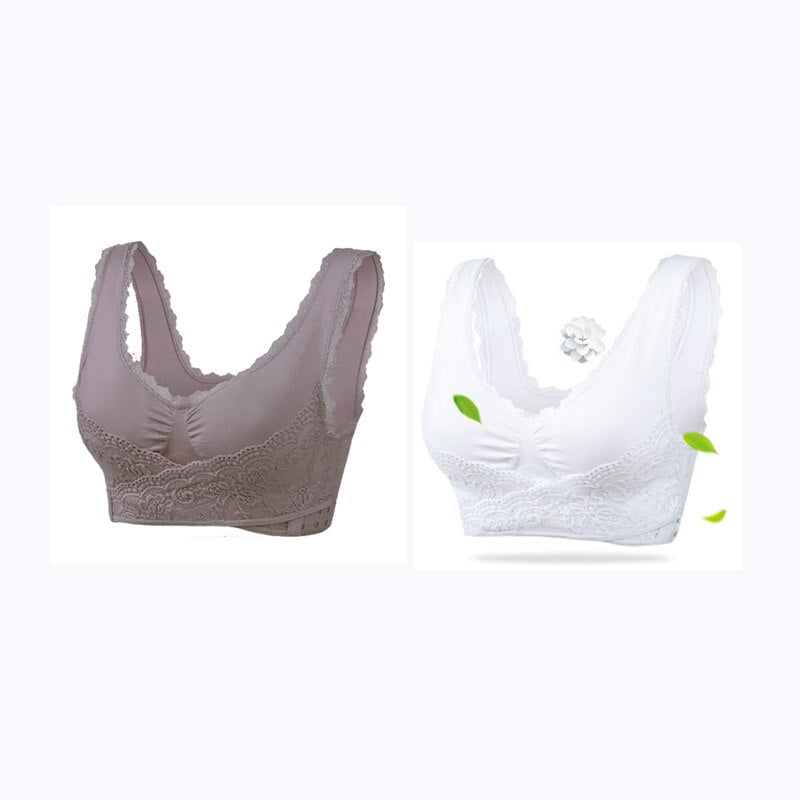 2Pcs Women Big Size Bras Front Clouse Push Up Gather Lace Trim Lingerie Sexy Bra Sleep Sports Bralette Brassiere нижнее белье