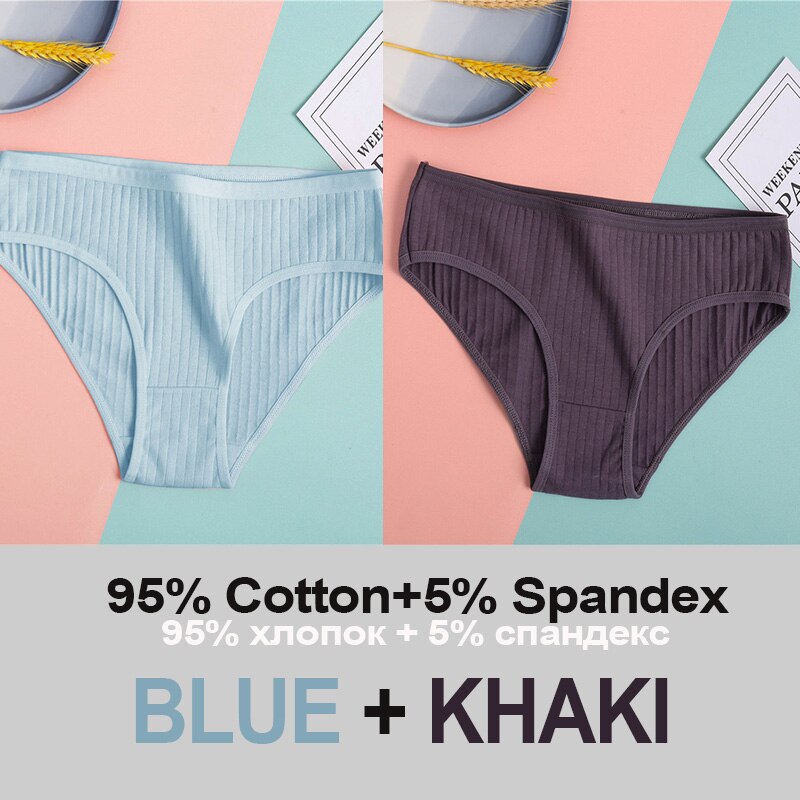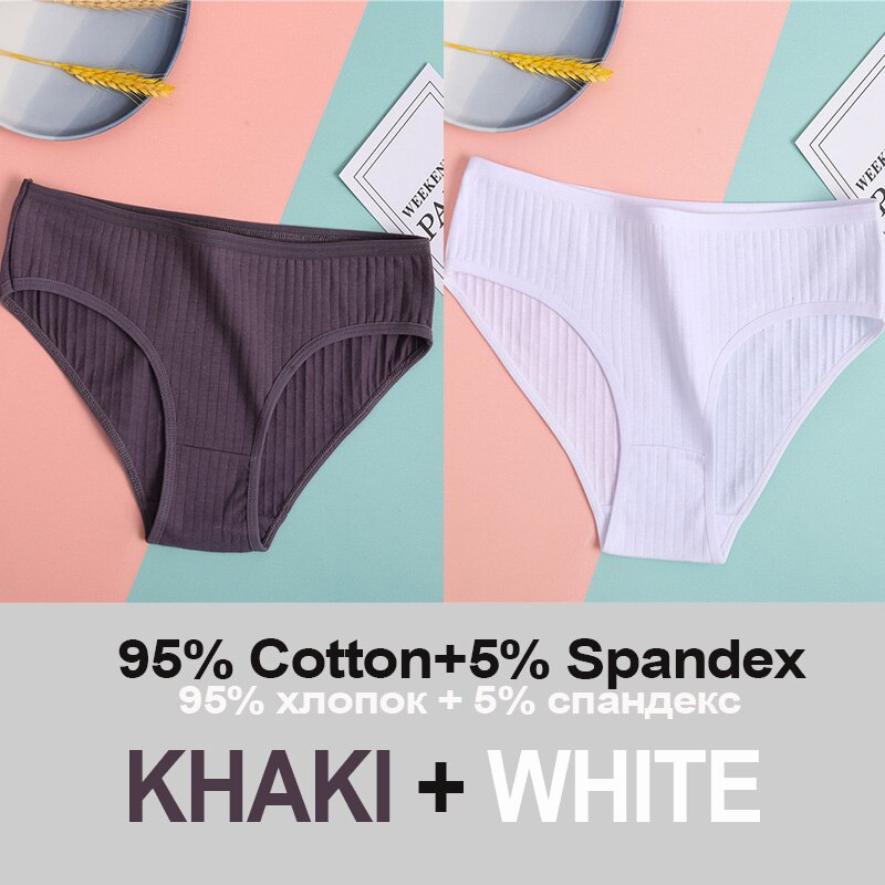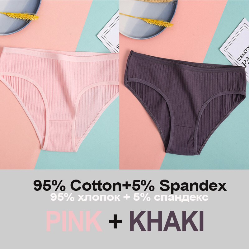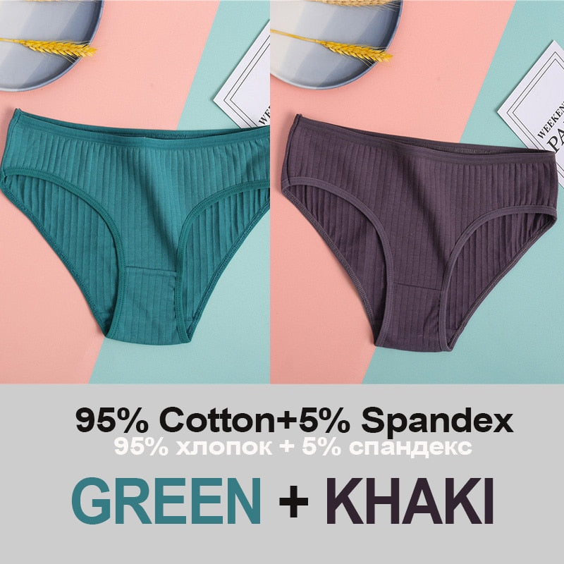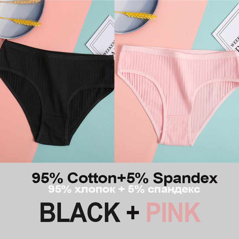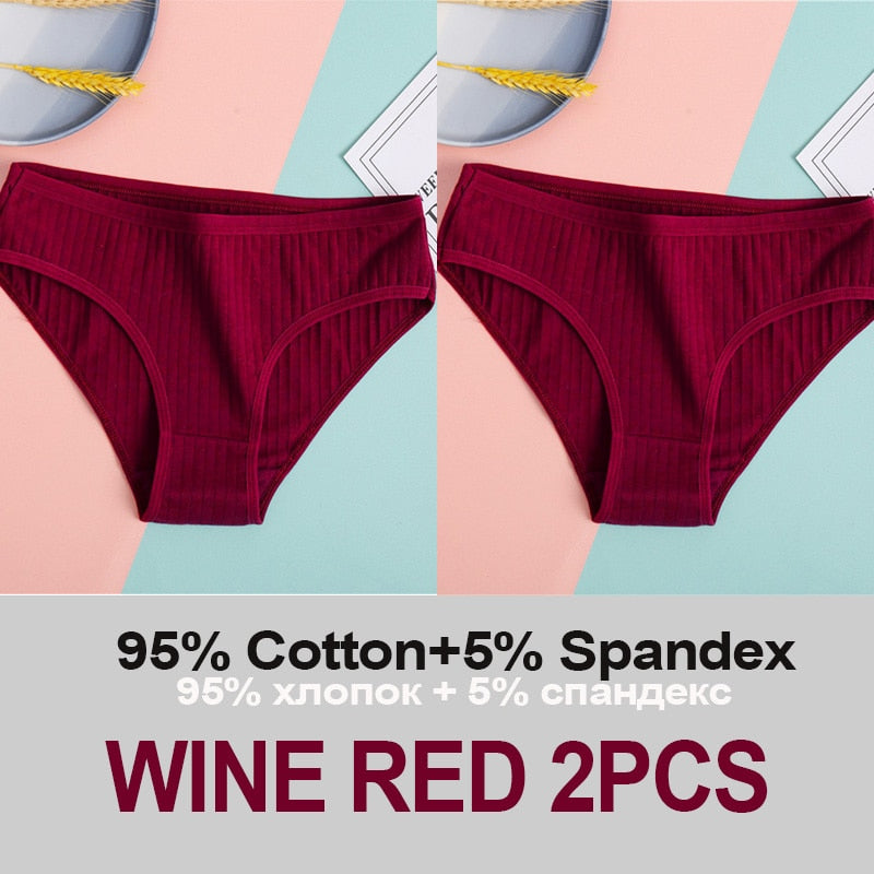 2PCS Women's Cotton Panties Sexy Underwear 6 Solid Color Panties for Woman Female Underpants Intimate Lingerie Briefs Pantys Set