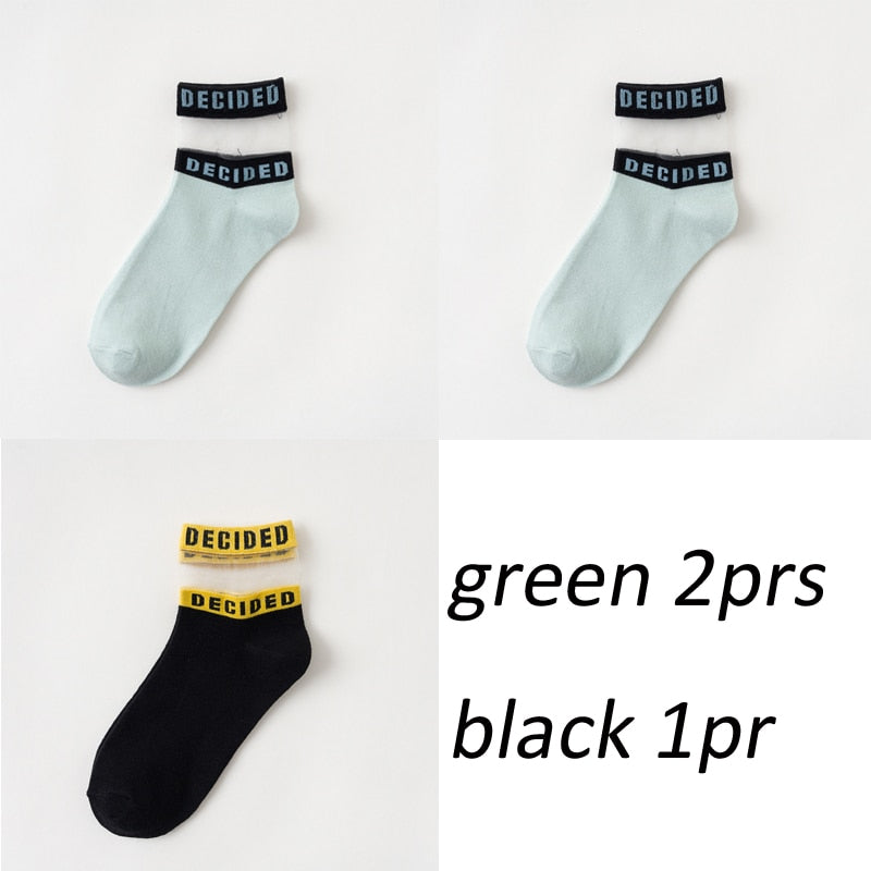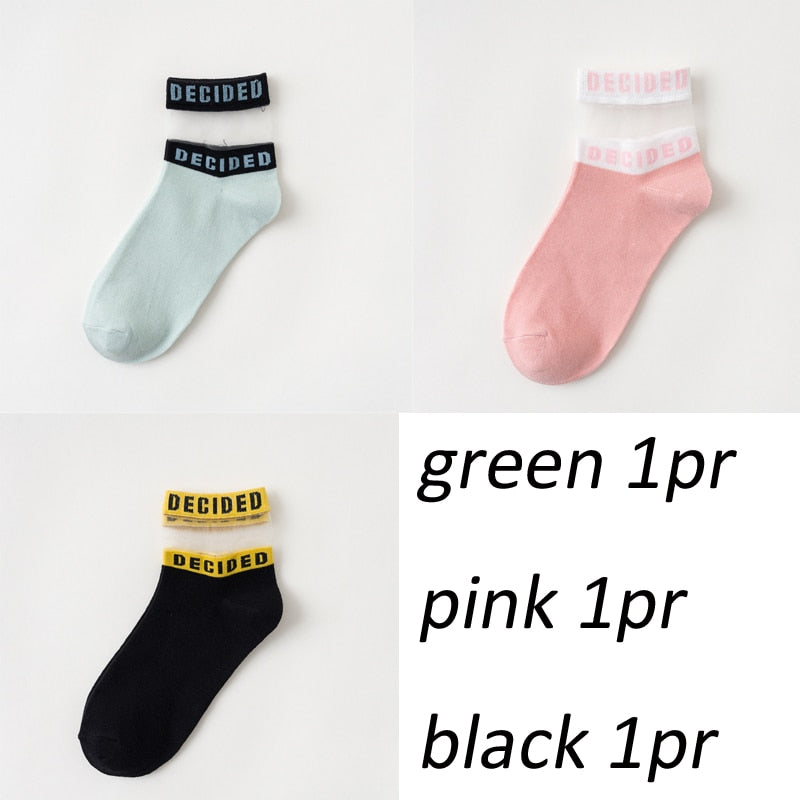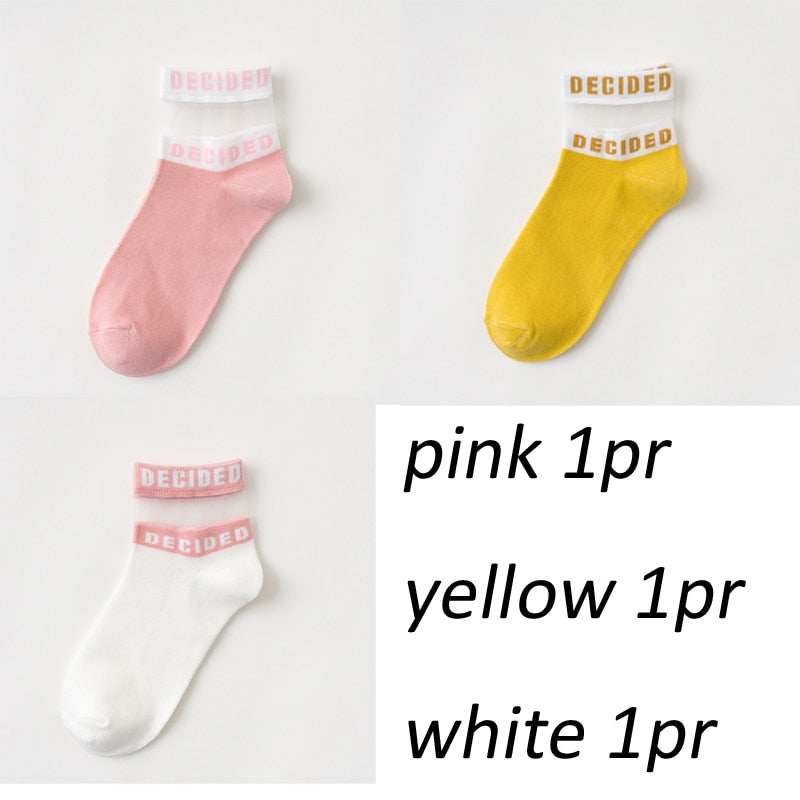3 pair/set Lot Patchwork Fashion Socks for Girls Women Comfortable Letter Sox mix Summer Color Indoor Floor socks Cute