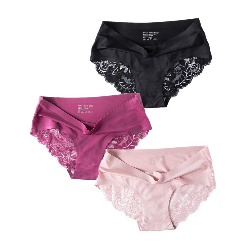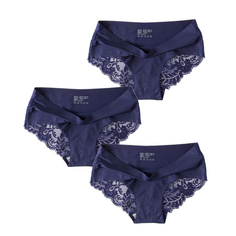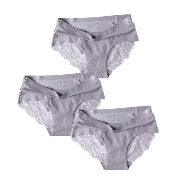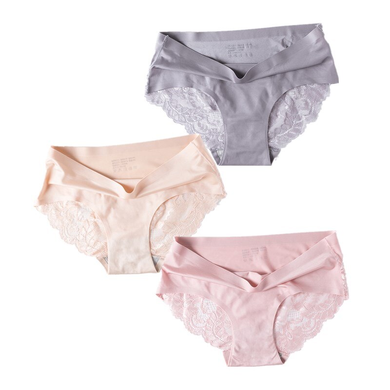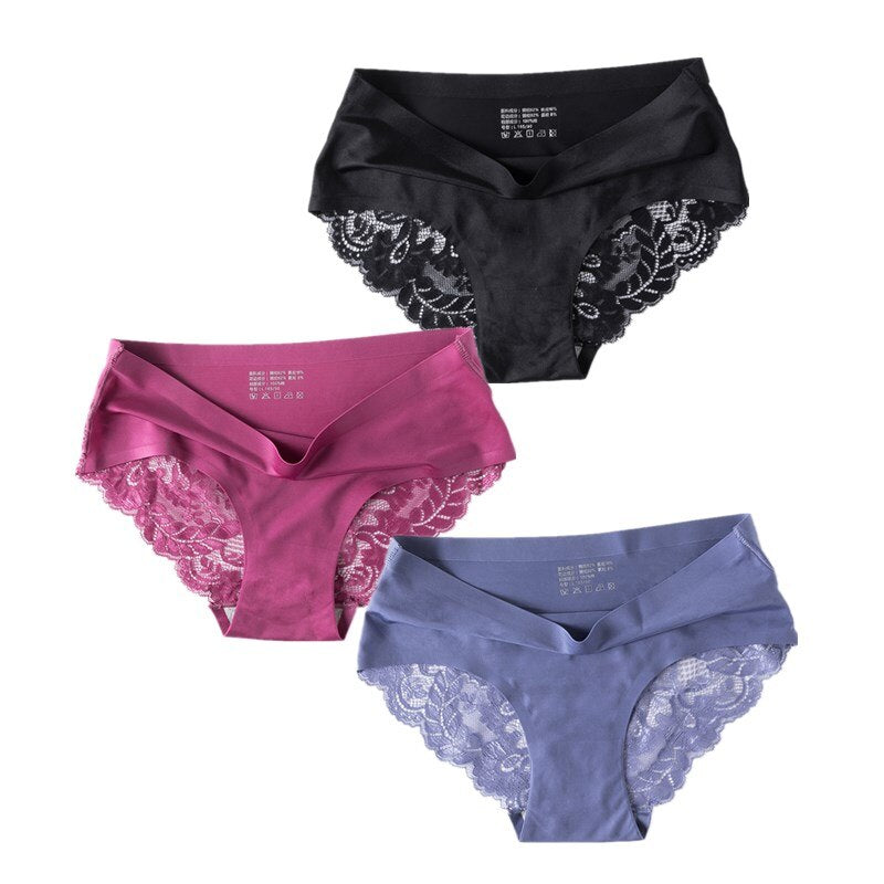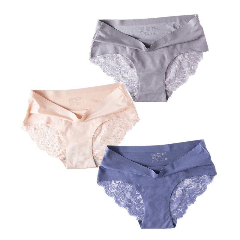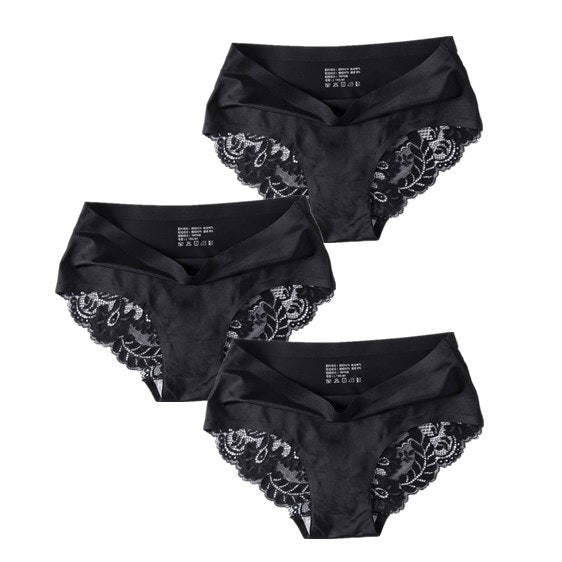 3 Pcs/Set Sexy Seamless Panties Women Lace Underwear Briefs Low Rise Ladies Silk Plus Size Solid Soft Transparent Panty Lingerie