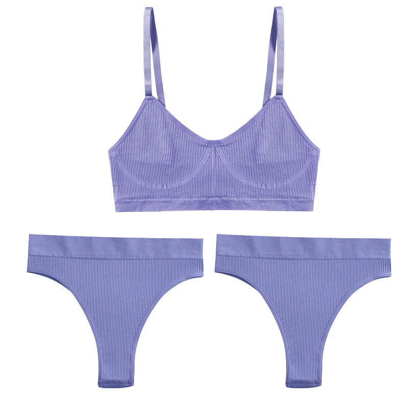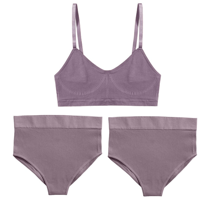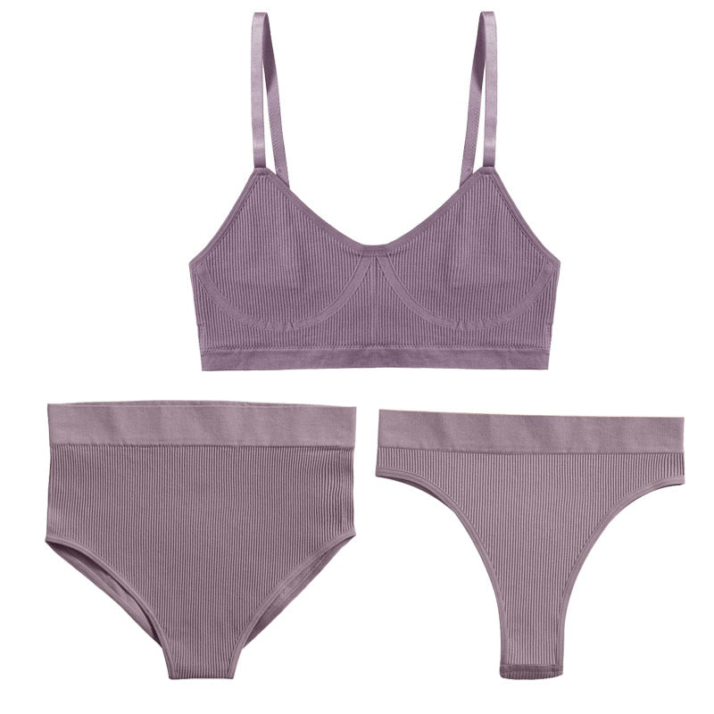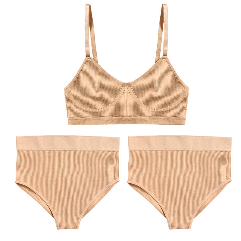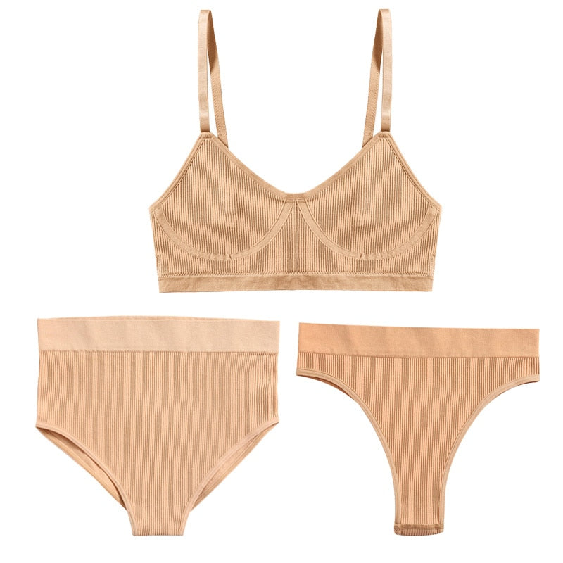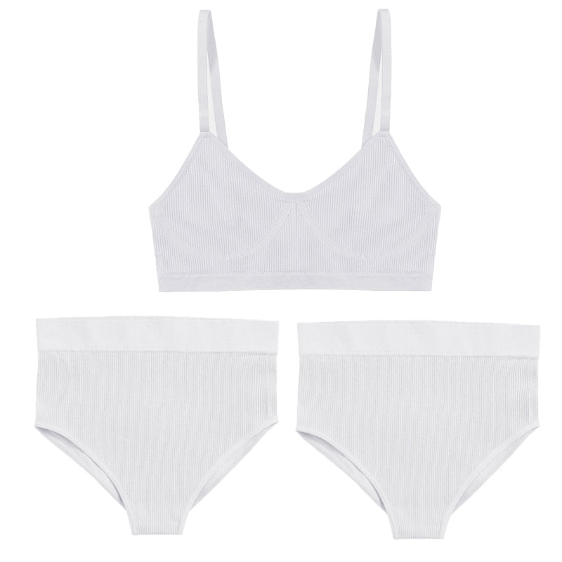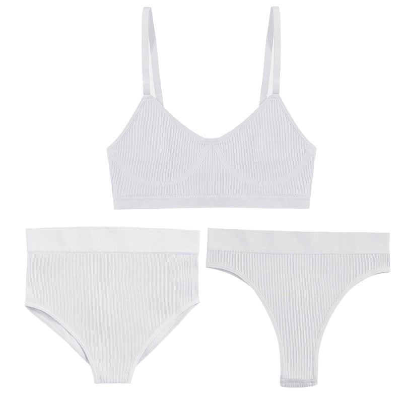 3PCS Bra Set Women Underwear Sexy High Waist Bodyshaper Briefs Thong Panties Female Bralette Lingerie Basic Top Active Brassiere