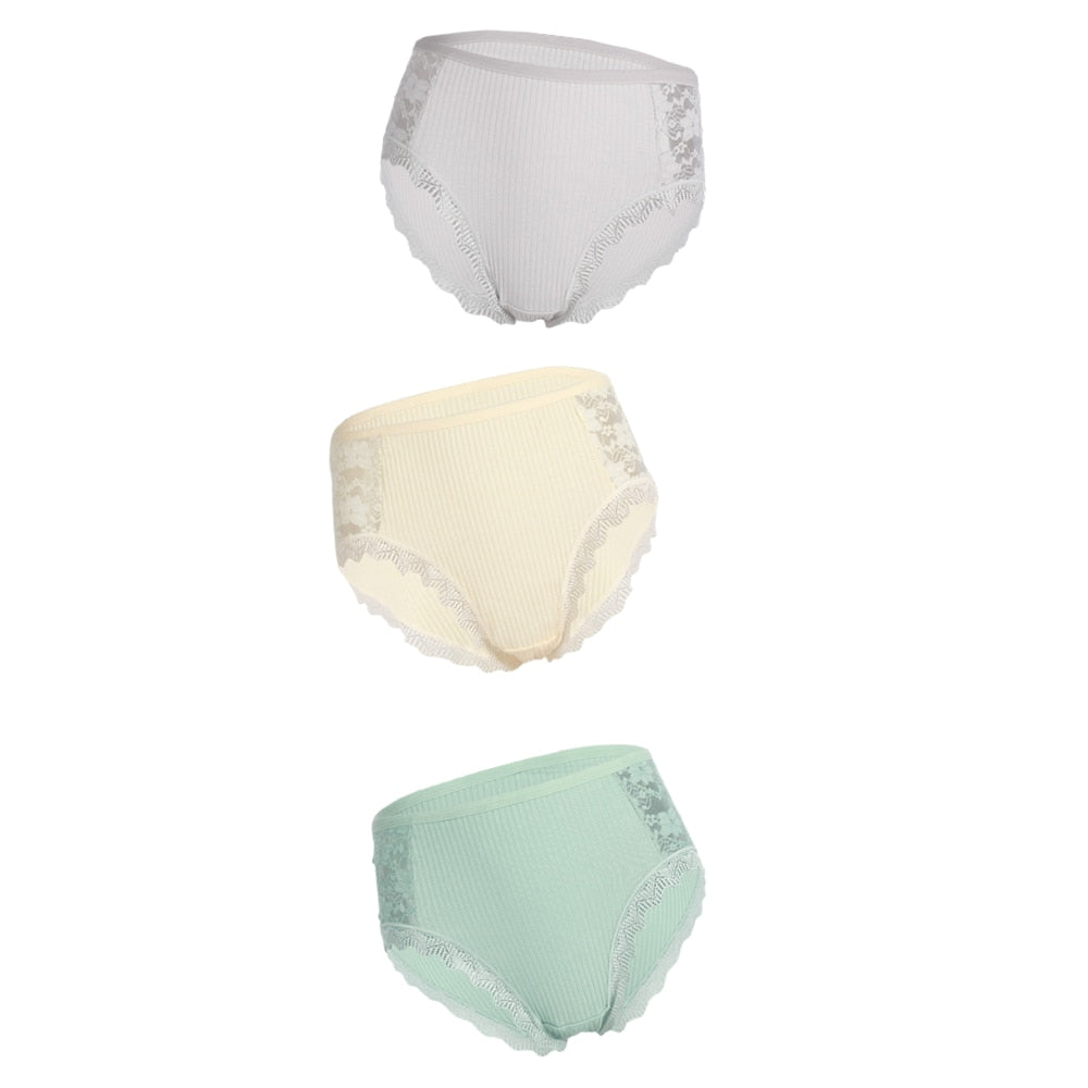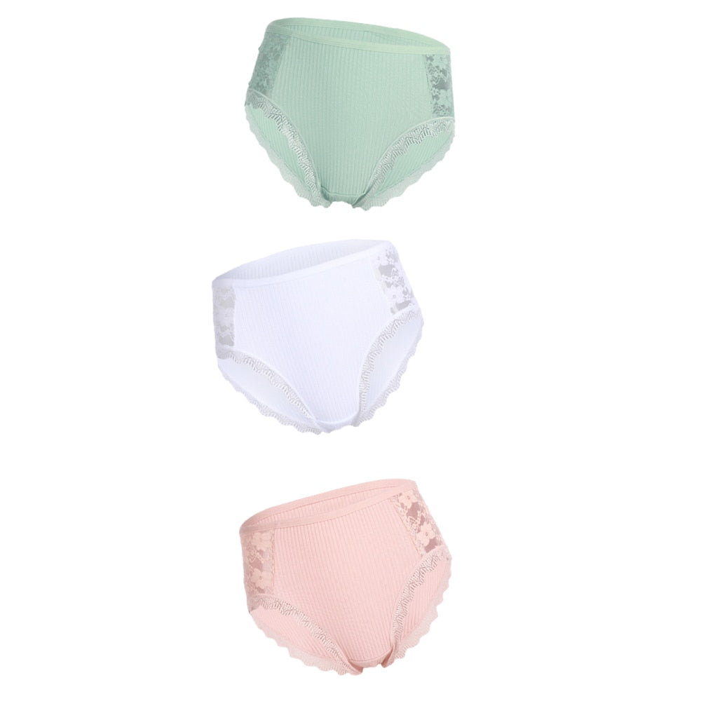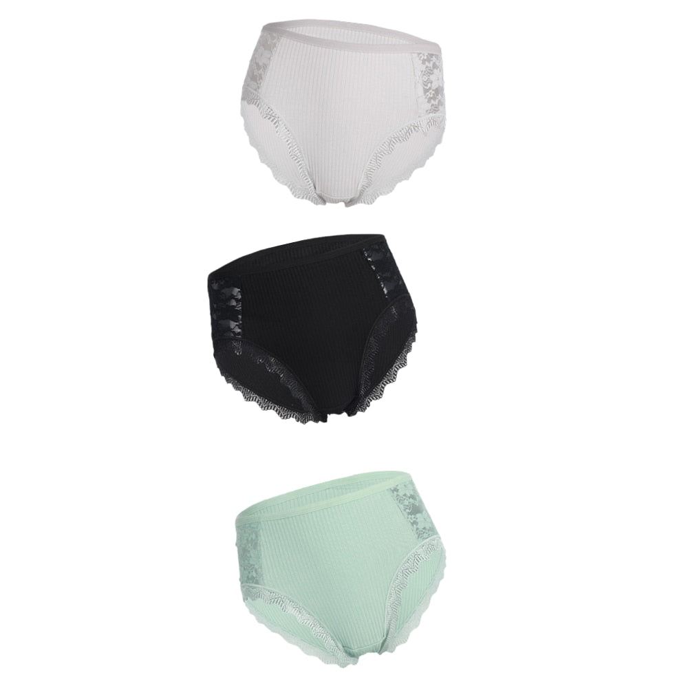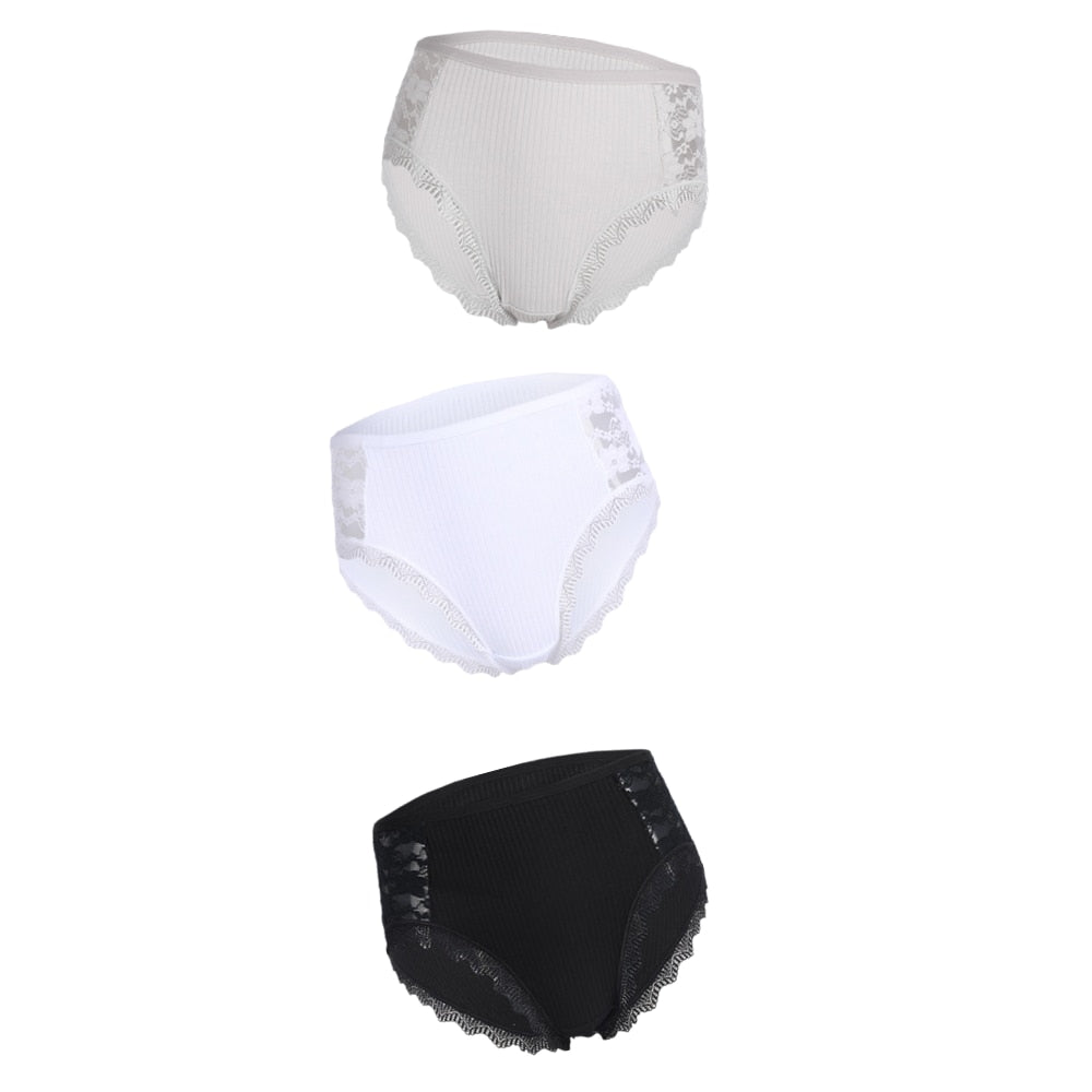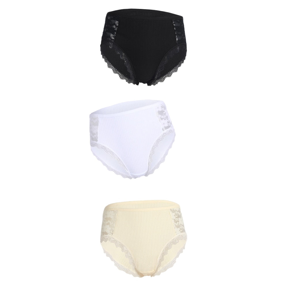 3PCS Hot Sale Cotton Panties Comfot Seamless High Waist Women's Panties Solid Lace Briefs Underwear Sexy Plus Size Underpants