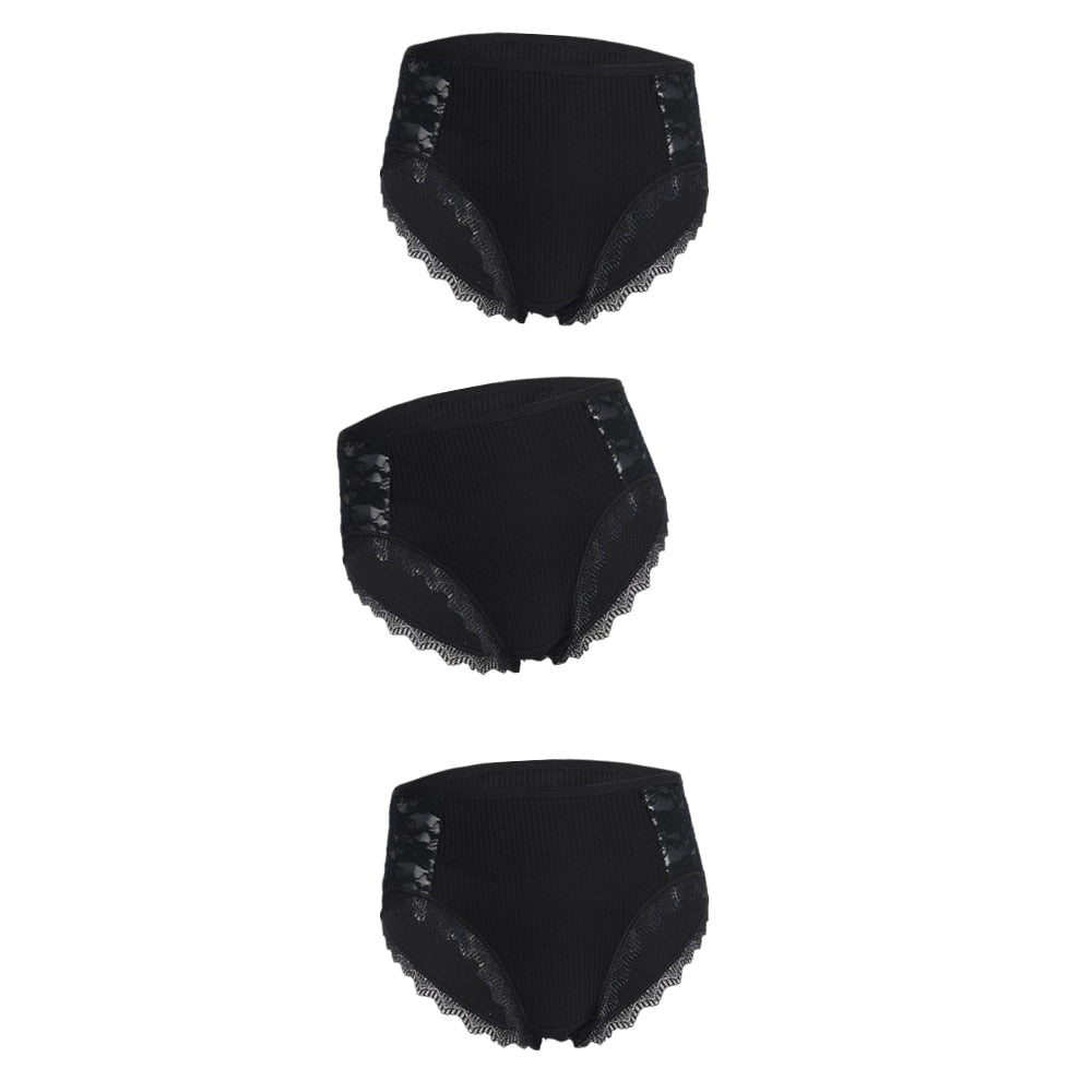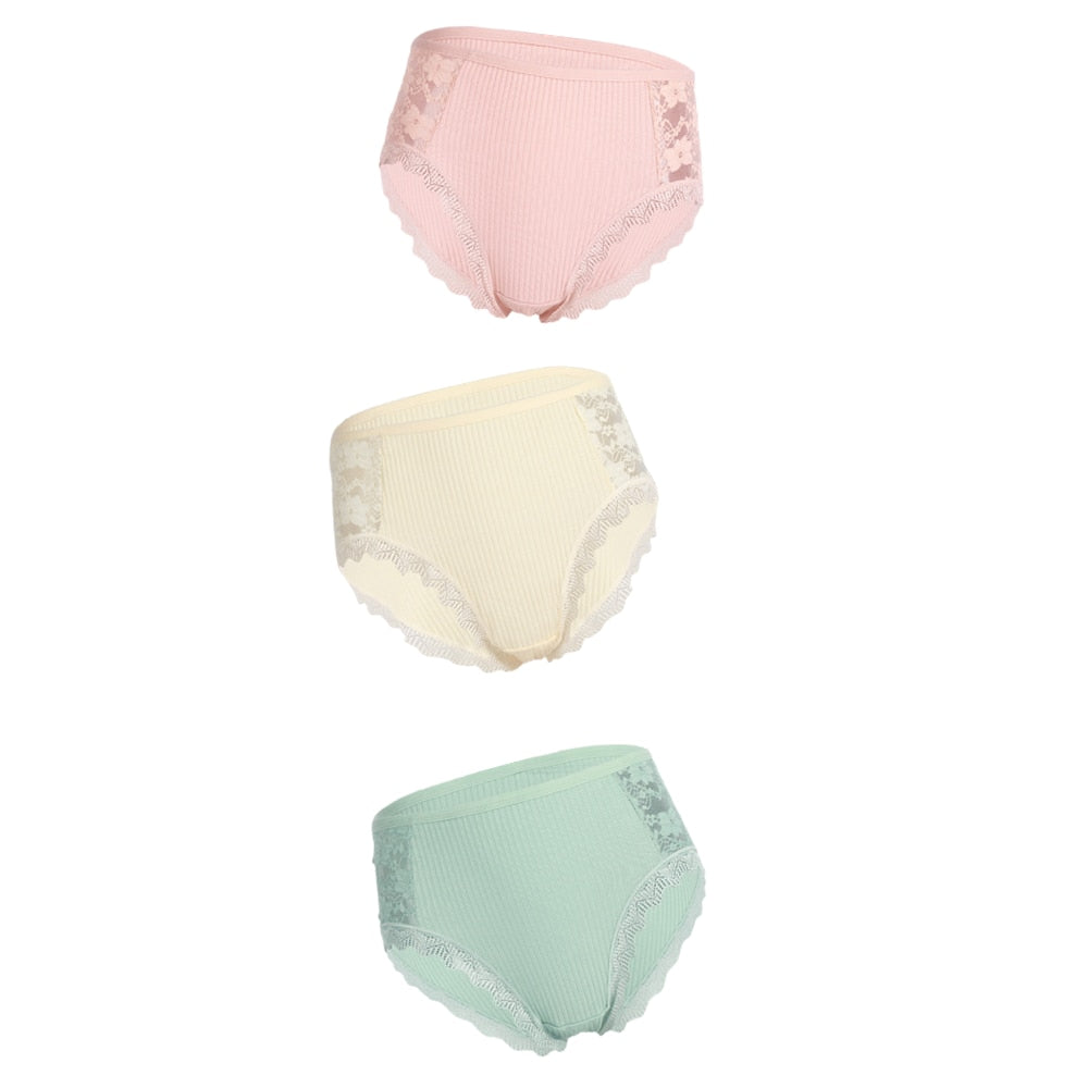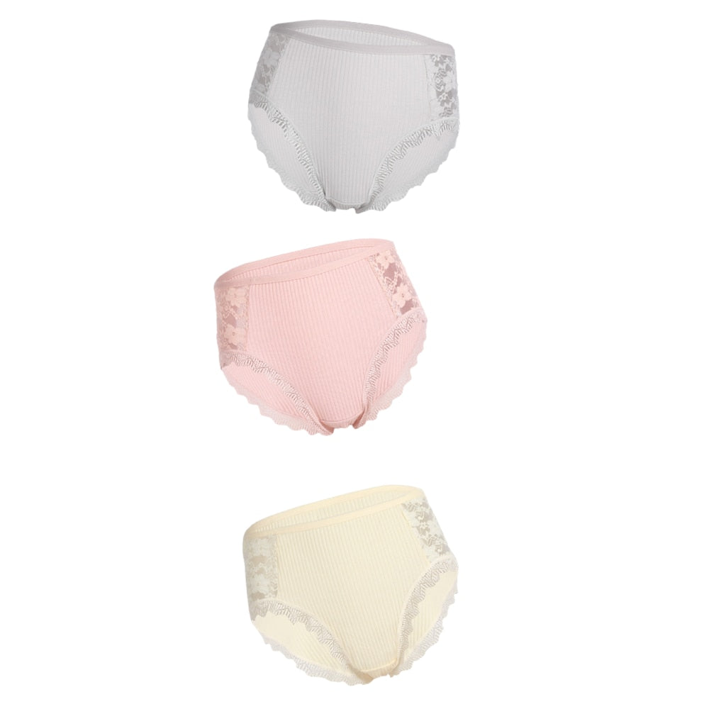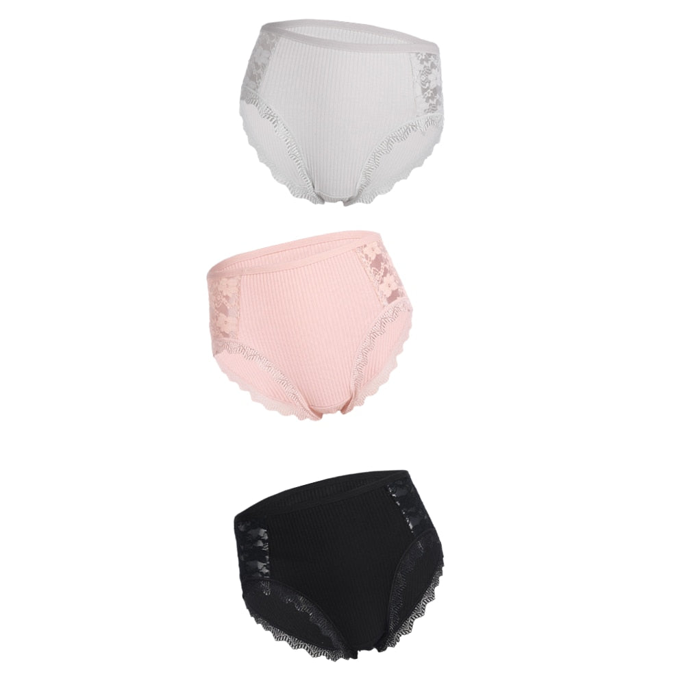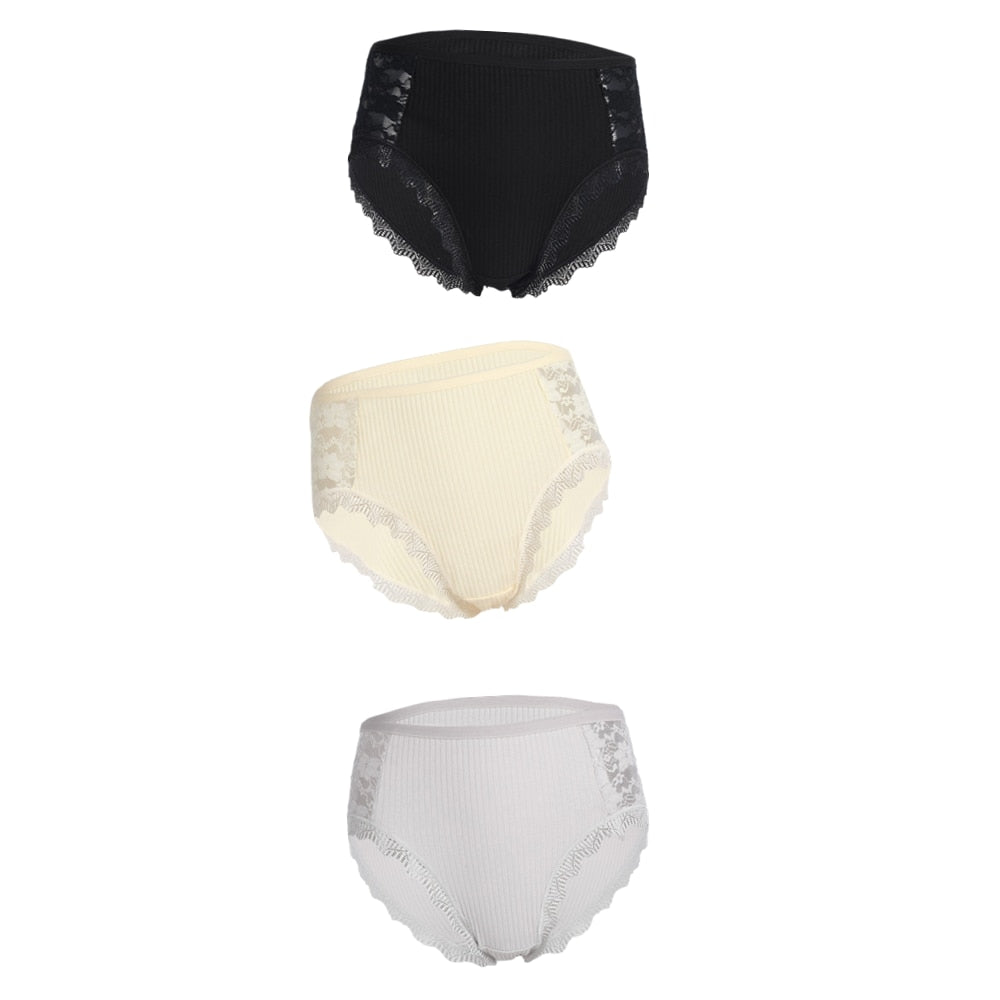 3PCS Hot Sale Cotton Panties Comfot Seamless High Waist Women's Panties Solid Lace Briefs Underwear Sexy Plus Size Underpants