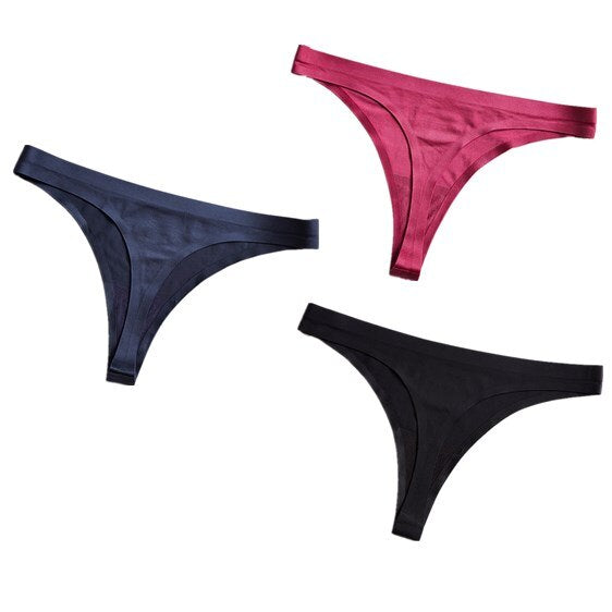 3PCS/Lot Ice Silk Thong Panties Sexy Women Underwear Female G-string Panties Solid Briefs For Ladies Low Waist Seamless Panty