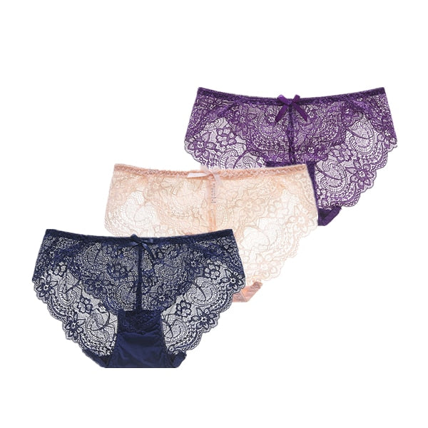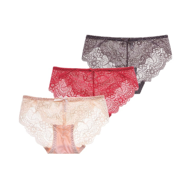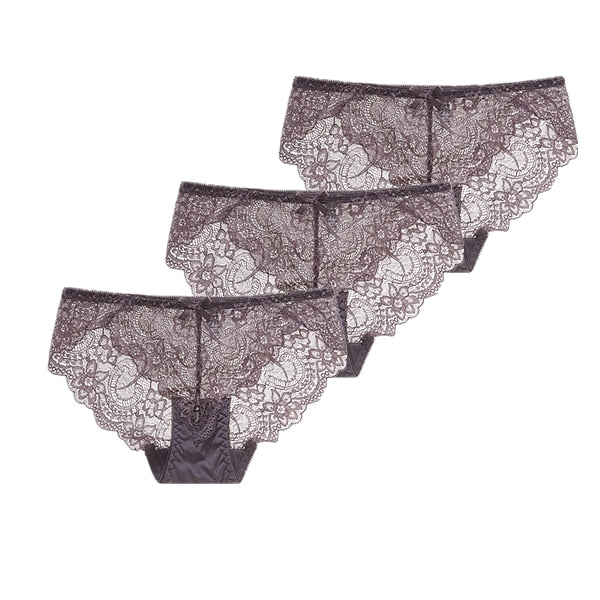 3Pcs/Lot Sexy Lace Underwear Women Transparent Low Waist Panties Cotton Crotch Briefs for Girls Breathable Seamless Lingeries