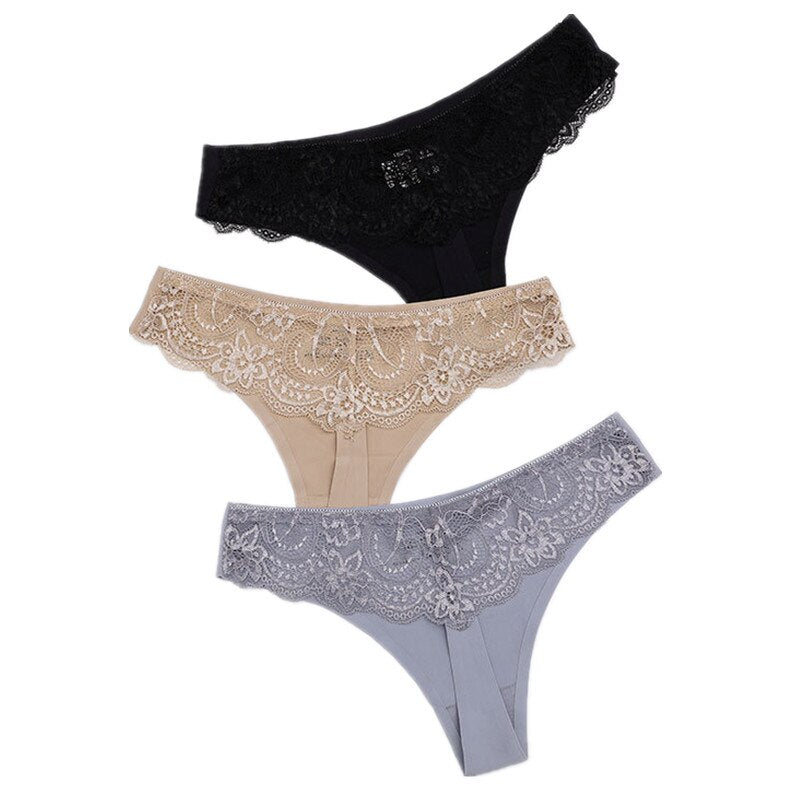 3Pcs/Lot Sexy Women G-string Thongs Lace Floral Sheer Low Waist Underwear Soft Lingerie Ice Silk Briefs Seamless Panties Soft