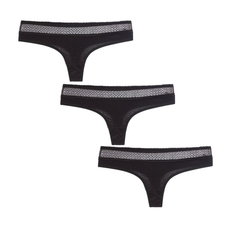 3Pcs/Lot Women G-String Cotton Thongs Solid Sexy Panties Lace Underwear Female T-back Underpants Girls Bikini Panty Thongs 2020