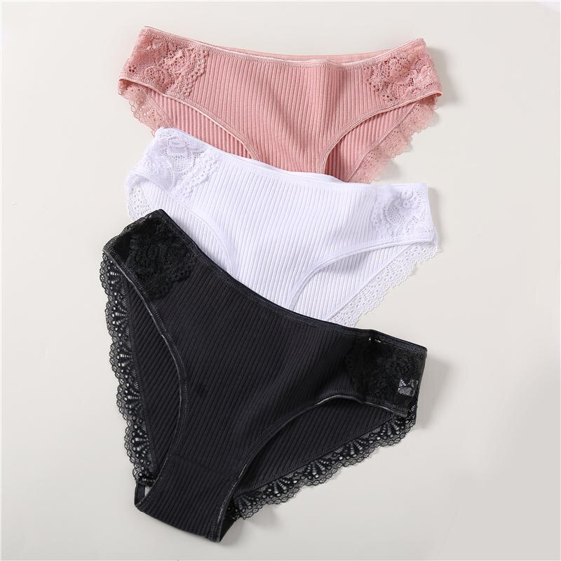 3PCS/Set 6 Color Women Panties Cotton Lace Briefs Solid Color for Female Striped Sexy Cotton Underwear Lingerie Low Waist Flower