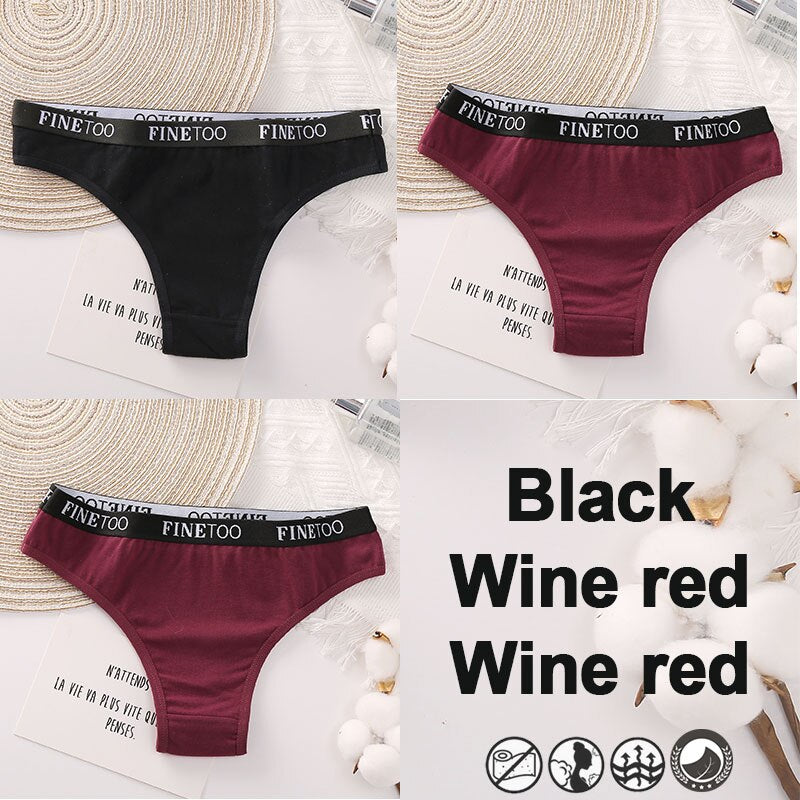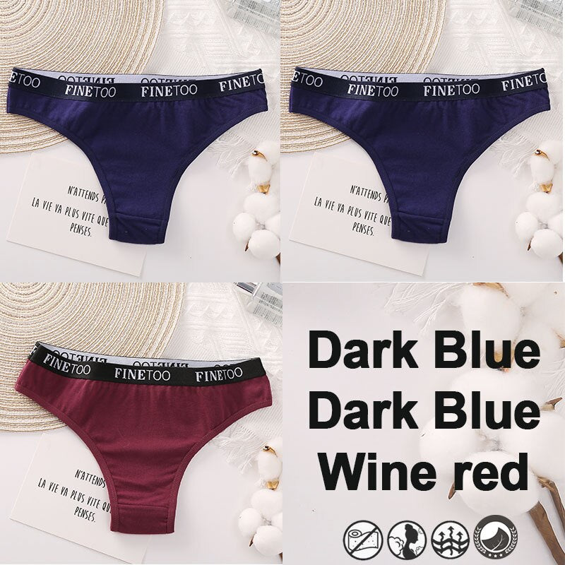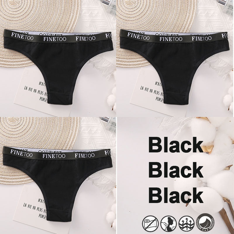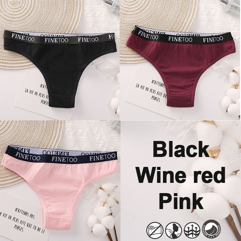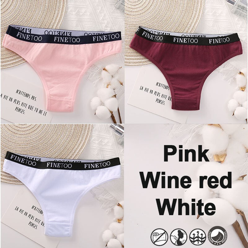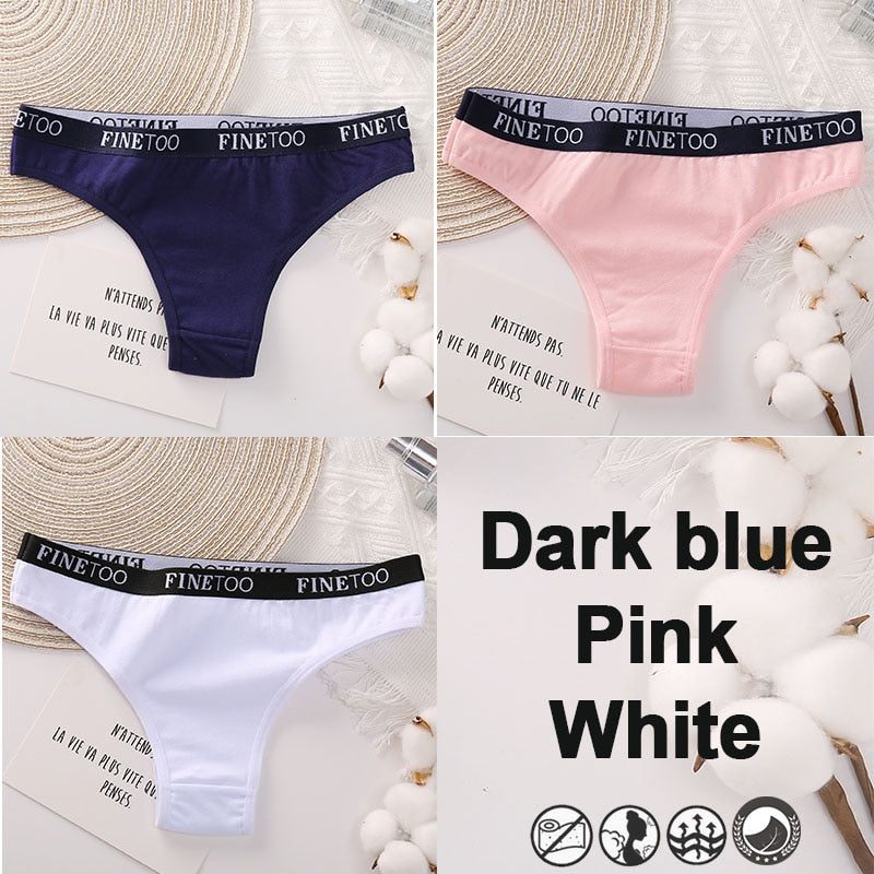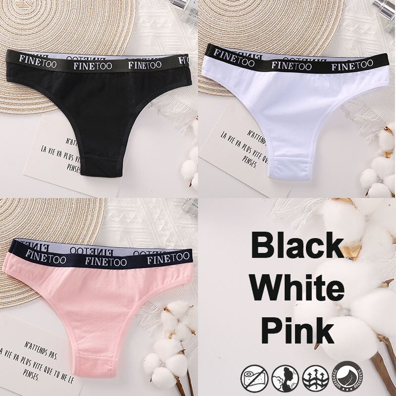 3PCS/Set Brazilian Panties Cotton Women's Underwear Sexy Lingerie Female Underpants Briefs Thong Girl Solid Color Finetoo Pantys