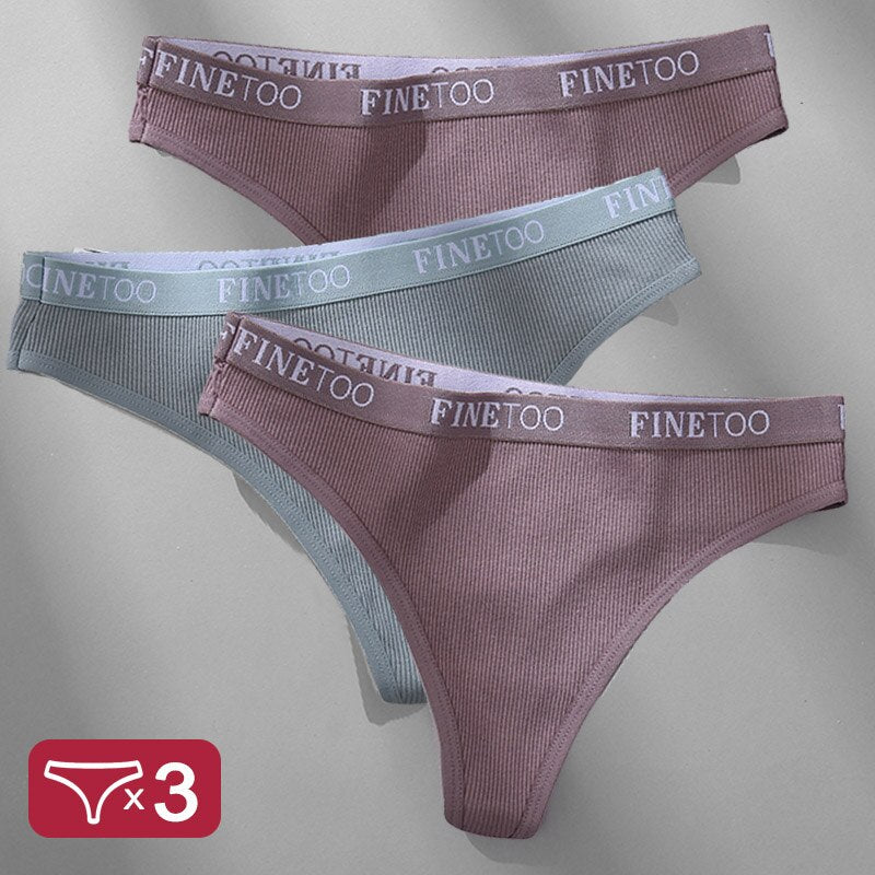 3PCS/Set Women's Panties Cotton Lingerie Female Underpants Sexy Briefs Thong G-String Finetoo Design Intimates T-back Pantys
