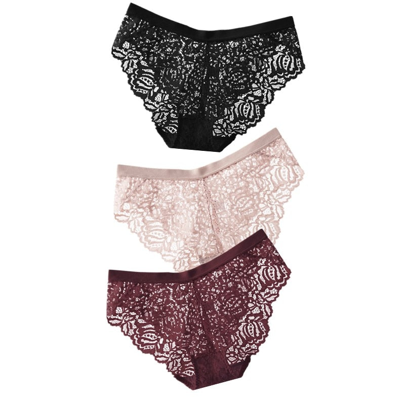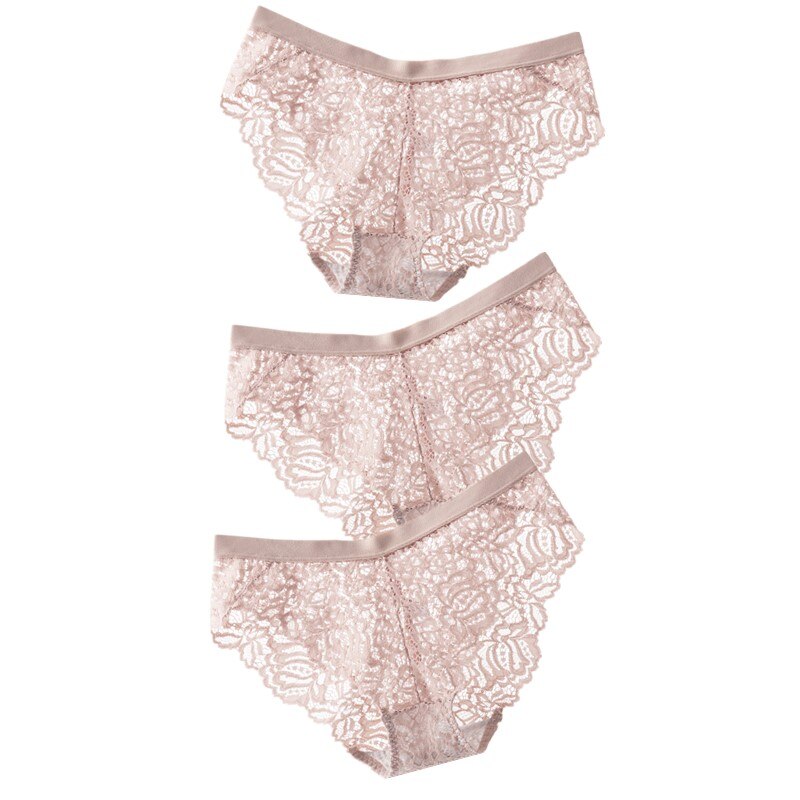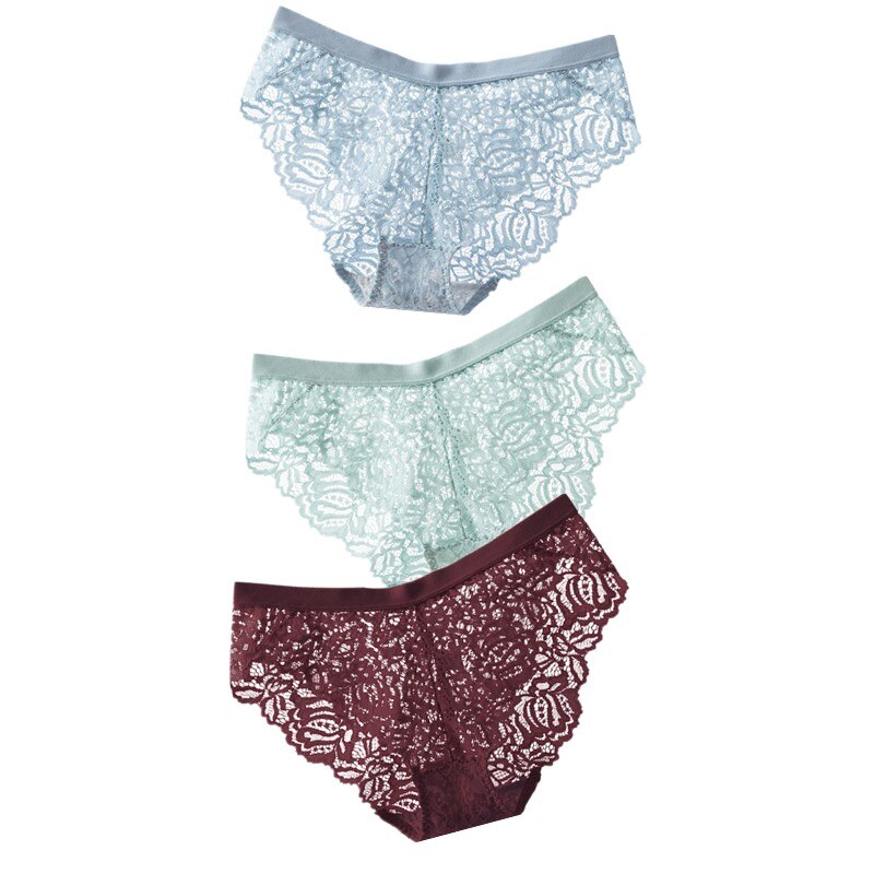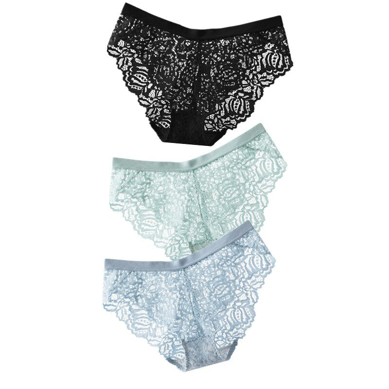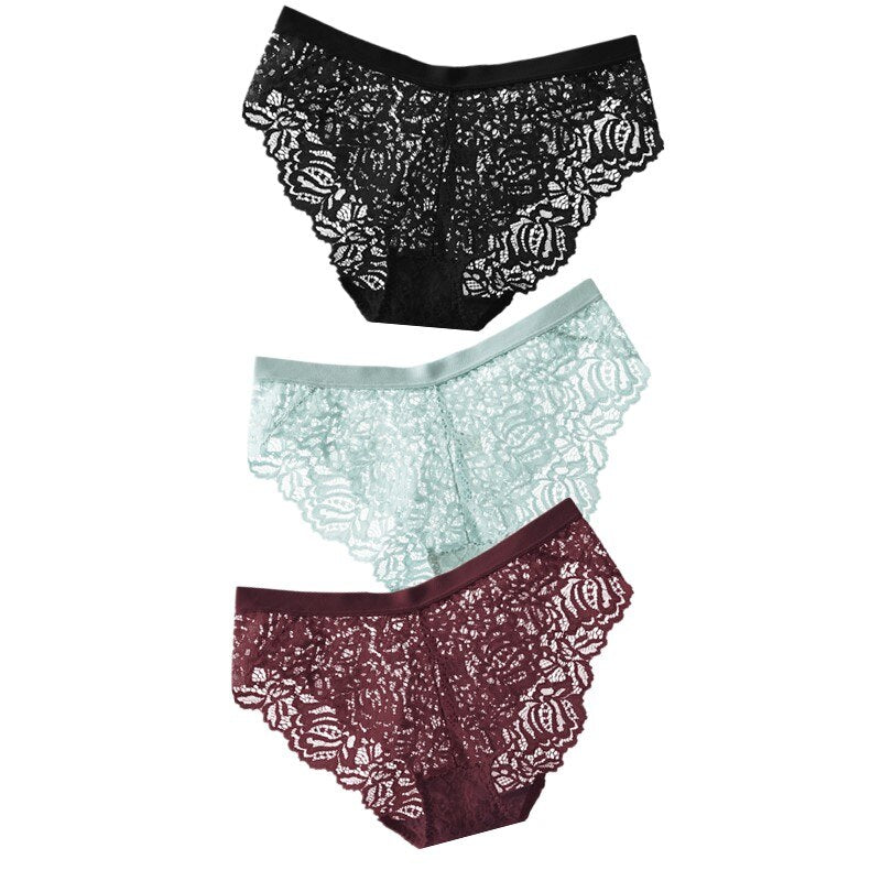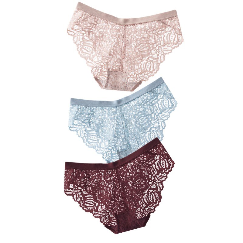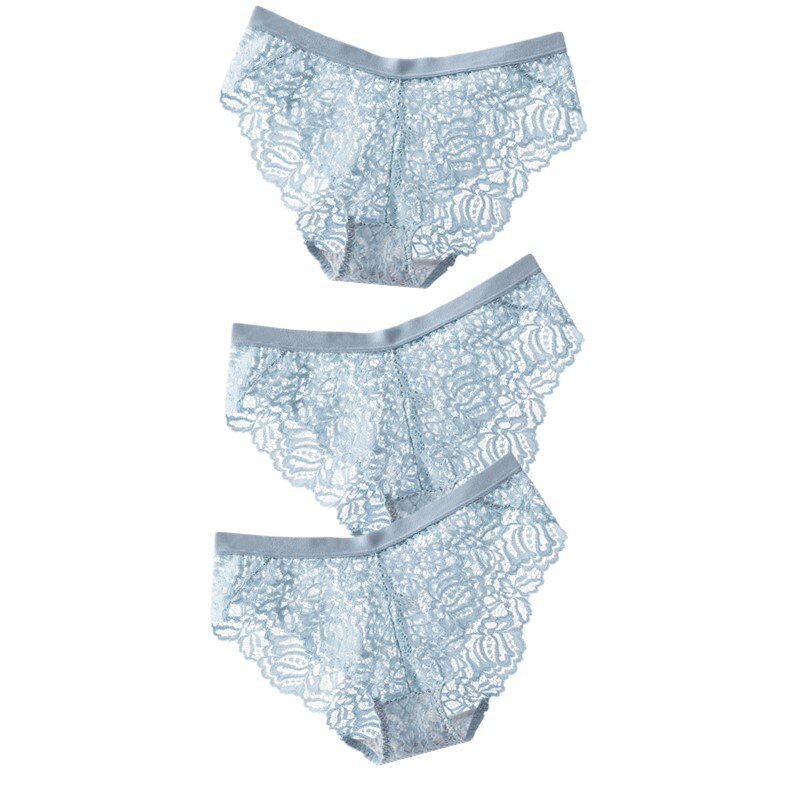 3PCS Sexy Lace Panties Soft Breathable Briefs Women Underwear Ladies Panty Transparent Low-Rise Underpants Lingerie Intimates XL