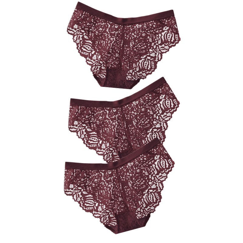 3PCS Sexy Lace Panties Soft Breathable Briefs Women Underwear Ladies Panty Transparent Tempting Low-Rise Cotton Lingerie Solid