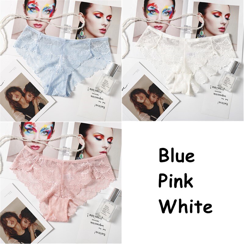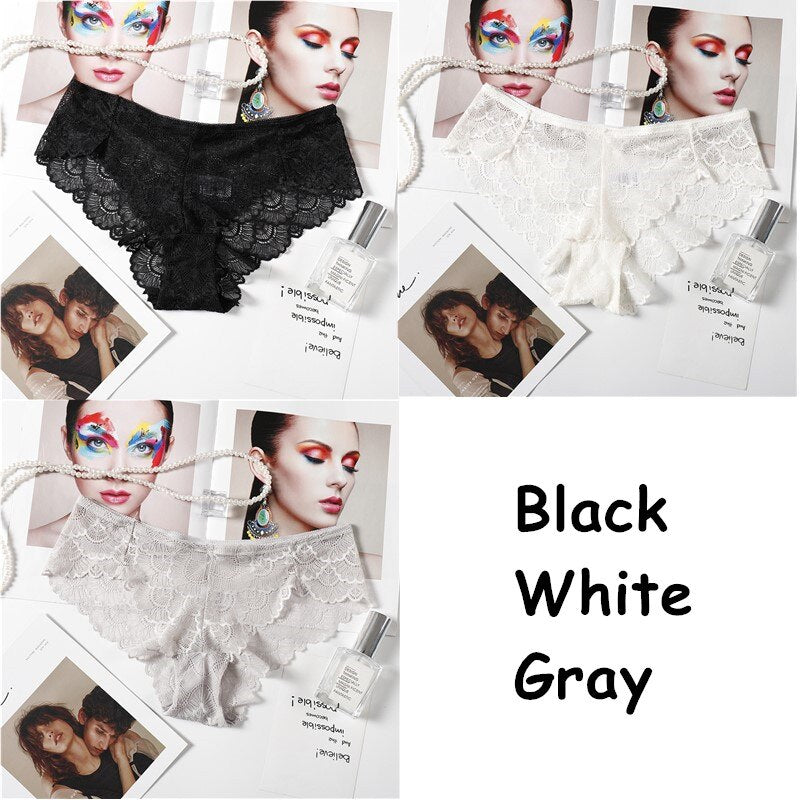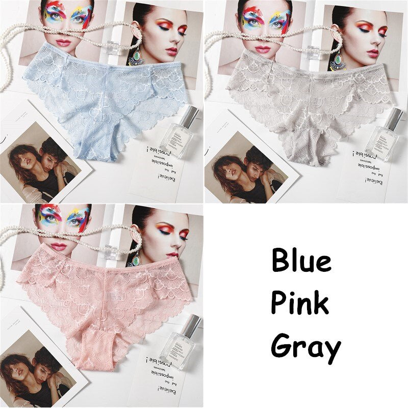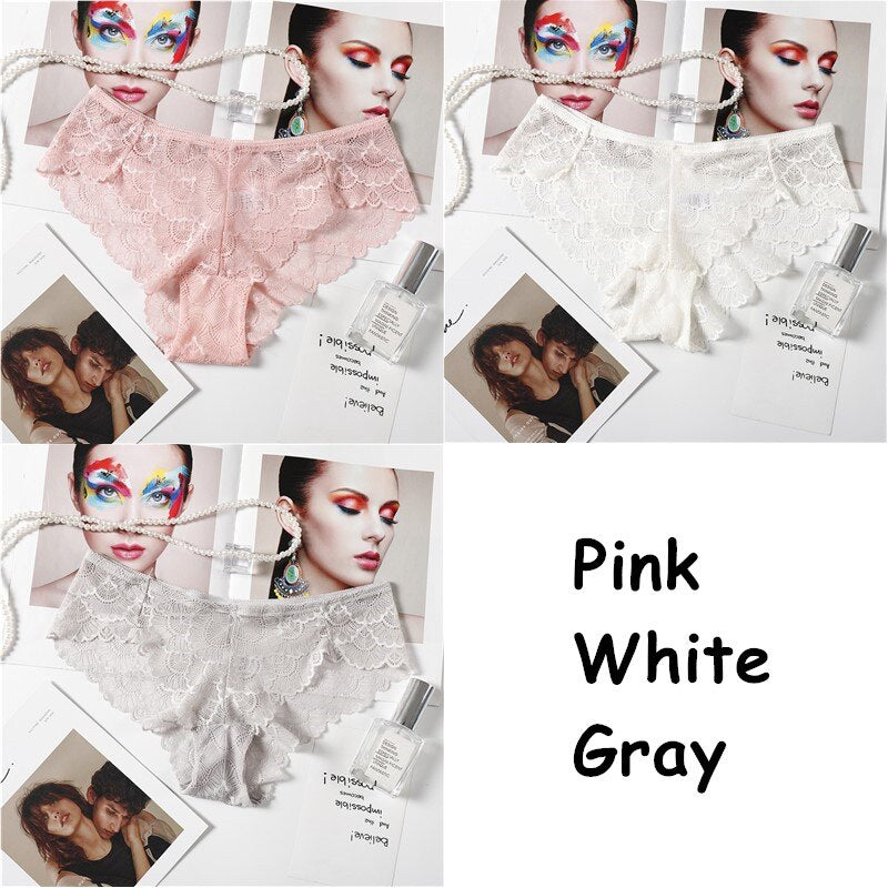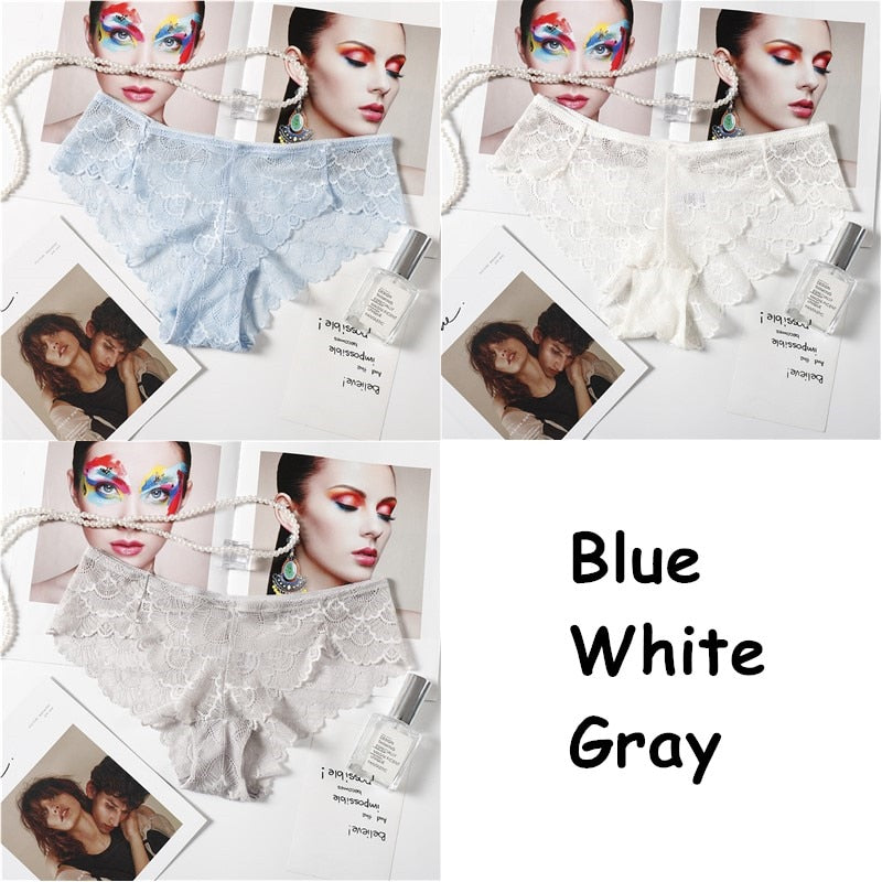 3PCS Sexy Lace Panties Solid Soft Breathable Briefs Seamless Women Underwear Ladies Panty Transparent Tempting Low-Rise Lingerie