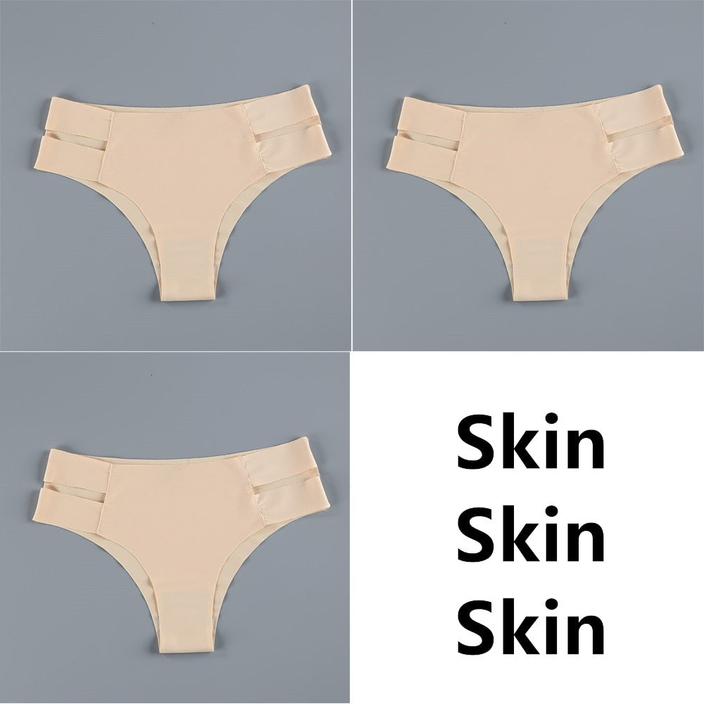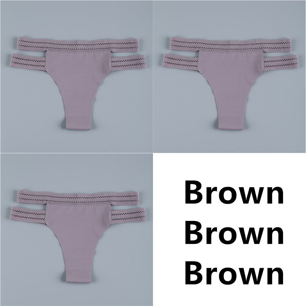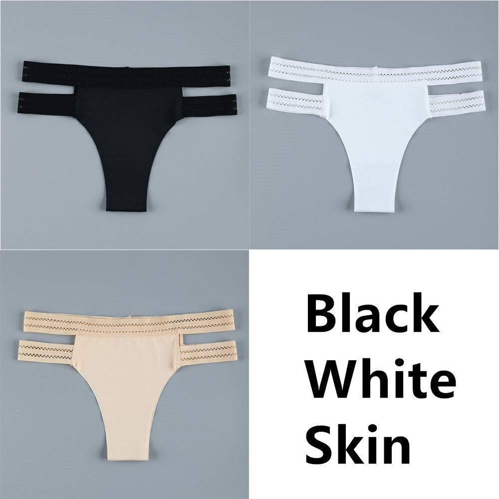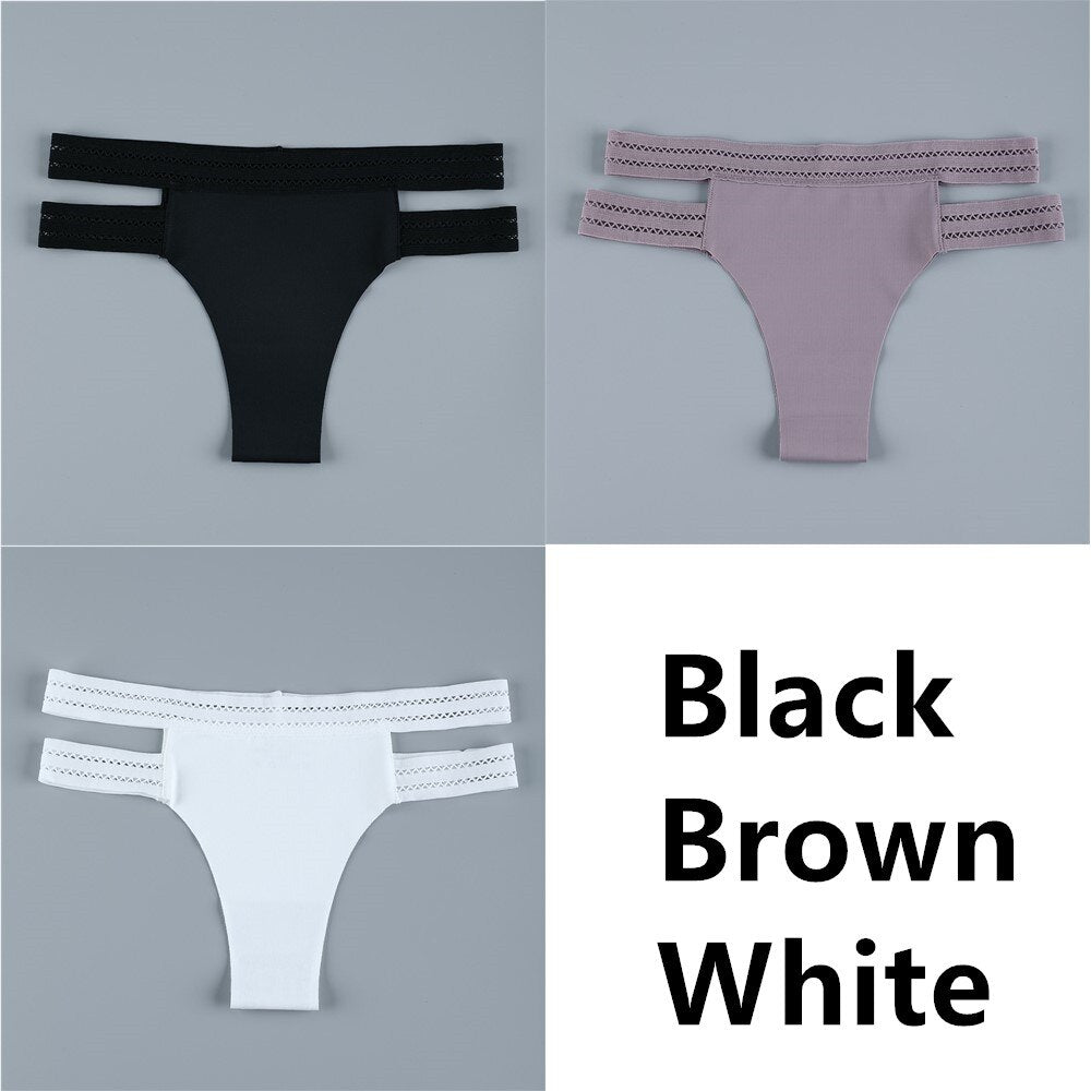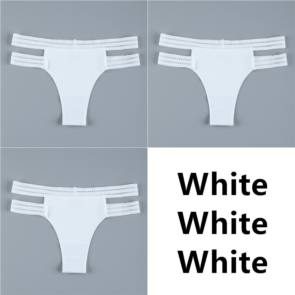 3Pcs Sexy Women Panties Seamless G-String Panties Set Lingerie Hollow Soft Briefs Low Rise Thong Breathable Female Underwear New