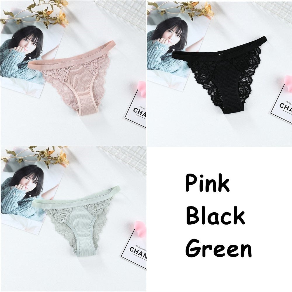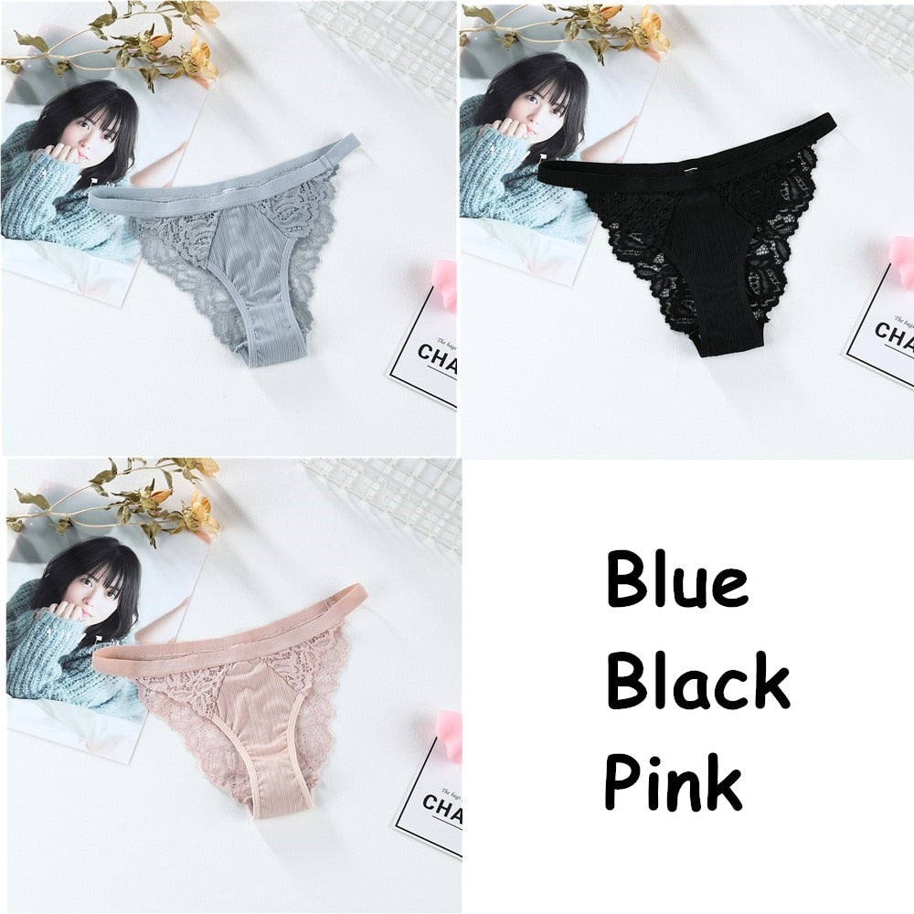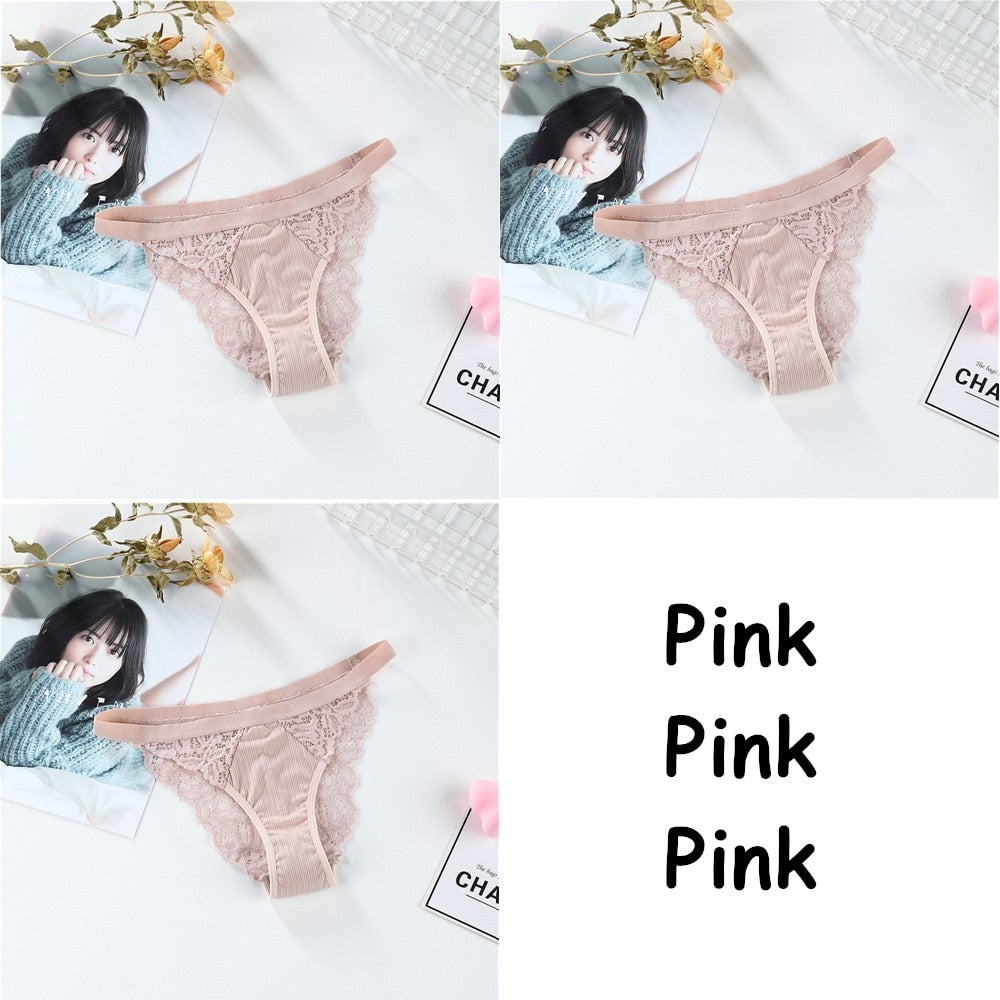 3PCS Soft Cotton Women Underwear Panties Solid Comfort Underpants Seamless Lace Briefs For Woman Sexy Low-Rise Panty Intimates