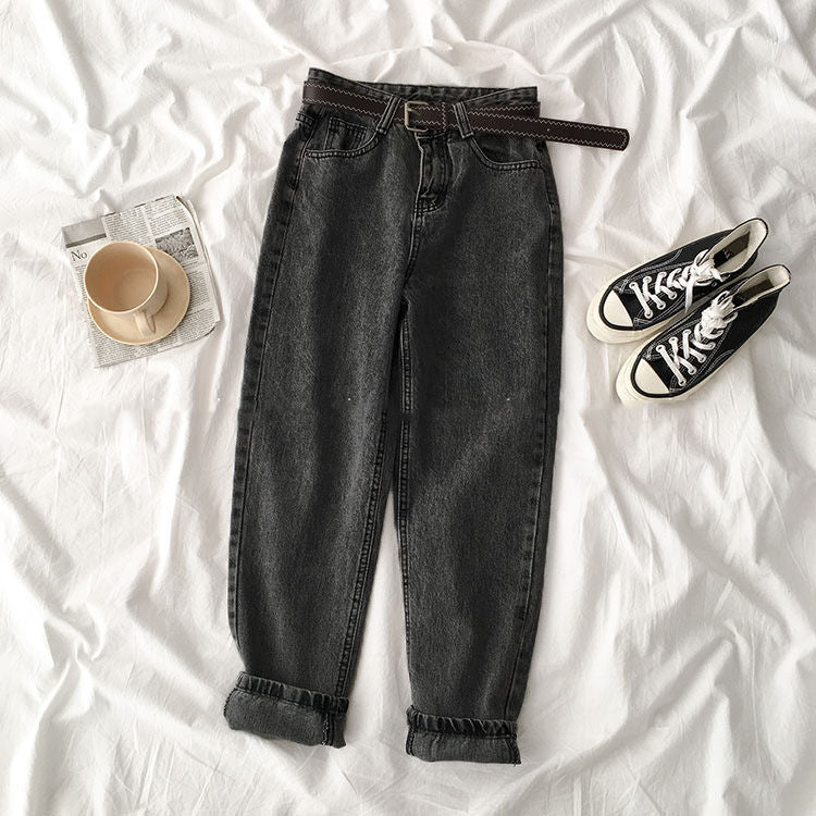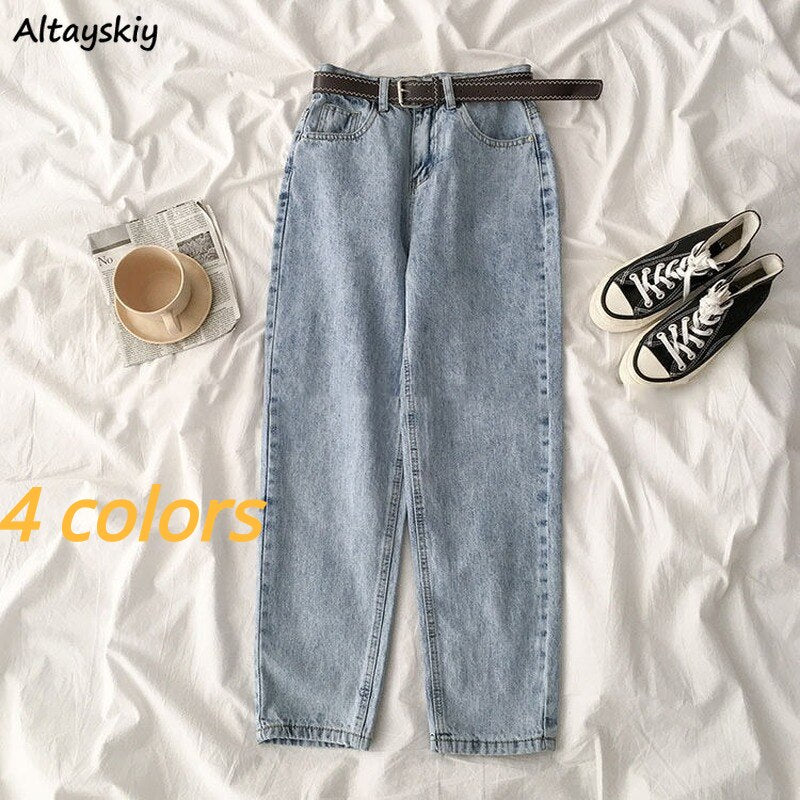 4 Colors Harem Jeans Women Korean Style Slim Vintage Washed Hipster High Waist College Ulzzang Street All-match Chic Female Fall