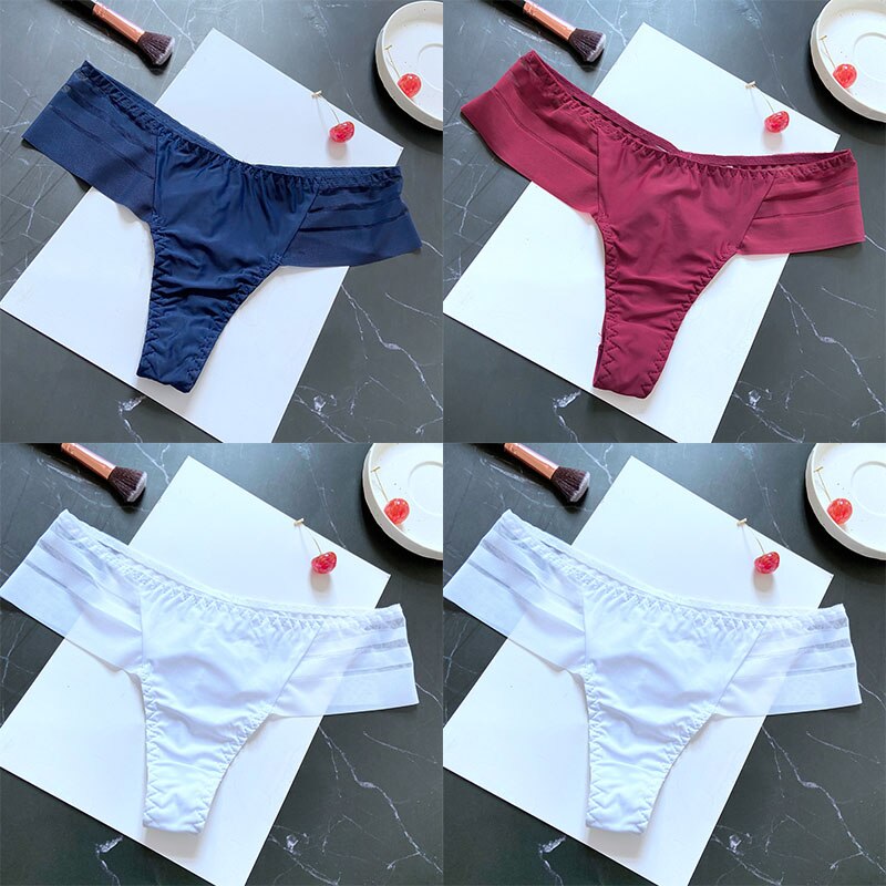 4PCS/Set Women Panties Sexy Seamless Panties Perspective Female Underpants G-string Thong Solid Color Pantys Intimates Lingerie