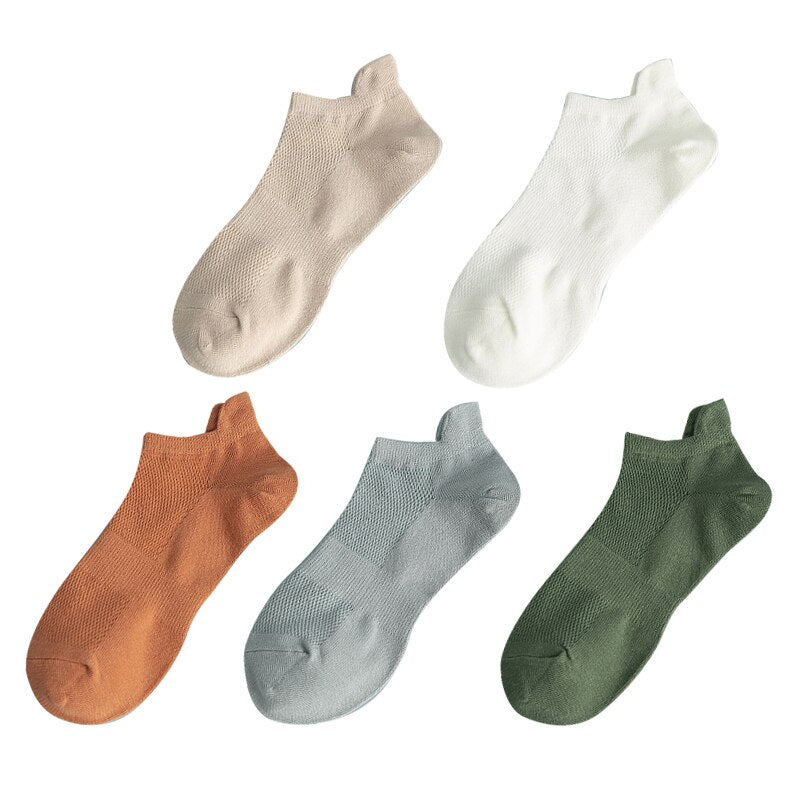 5 Pairs Women Socks Breathable Sports Socks Pack Solid Color Comfortable Cotton Novelty Mesh White Fashion Street Ankle Sock Set