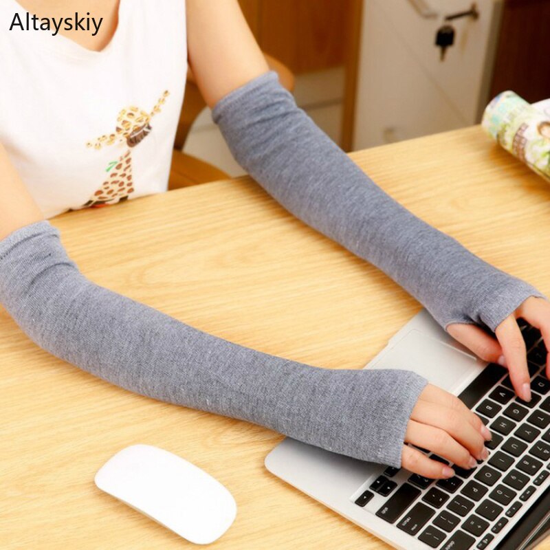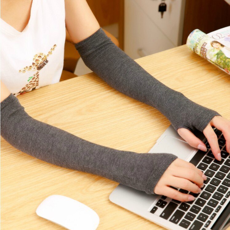 Arm Warmers Women Cashmere Striped Solid Warm Winter Long Finger-less Thicker Womens Sleeve All-match Leisure Trendy Chic Kawaii