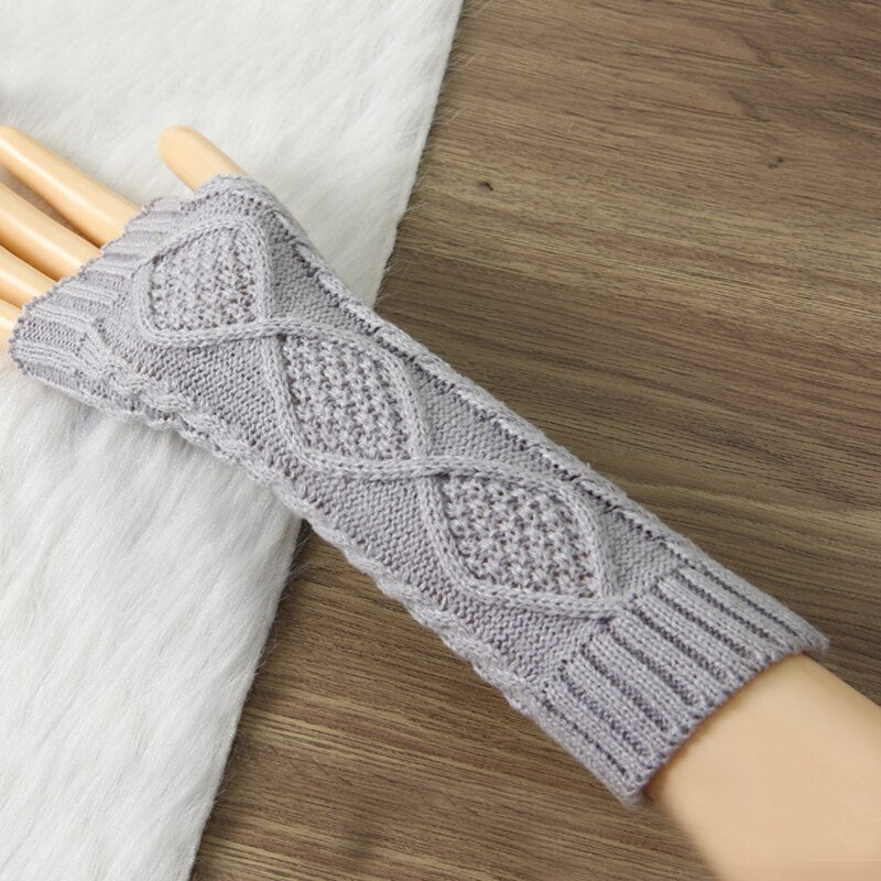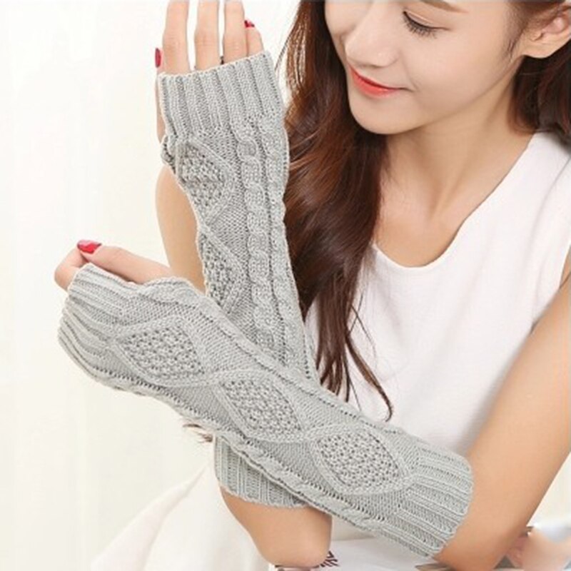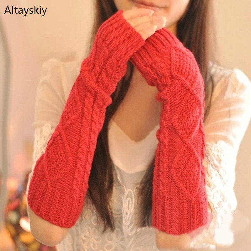 Arm Warmers Women Plaid Twist Knitting Solid Simple Warm Winter Half-fingered Finger-less Womens Mitts Leisure All-match Trendy