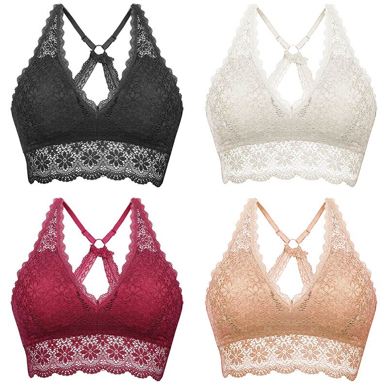 Back Cross Buckle Beauty Lace Bralette Female Sexy Bras Solid Color Wire Free Bra Ultrathin Brassiere Push Up Underwear Lingerie