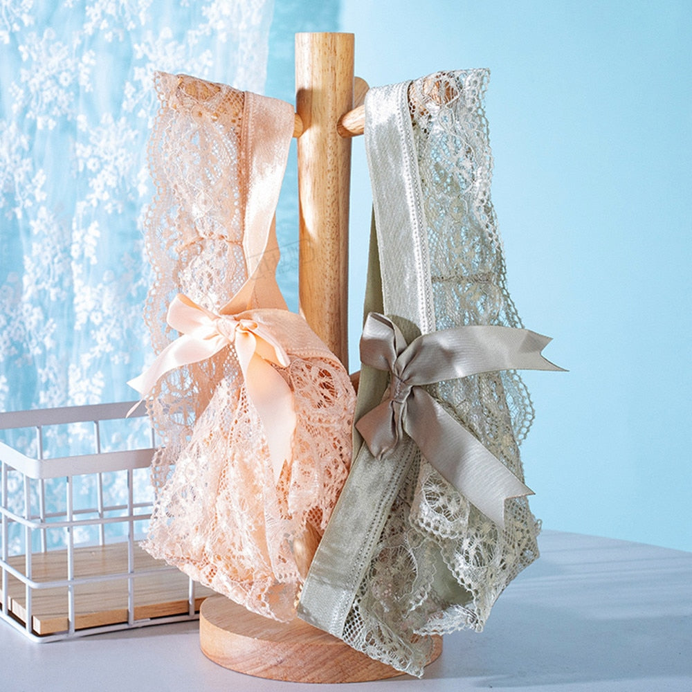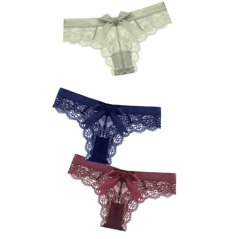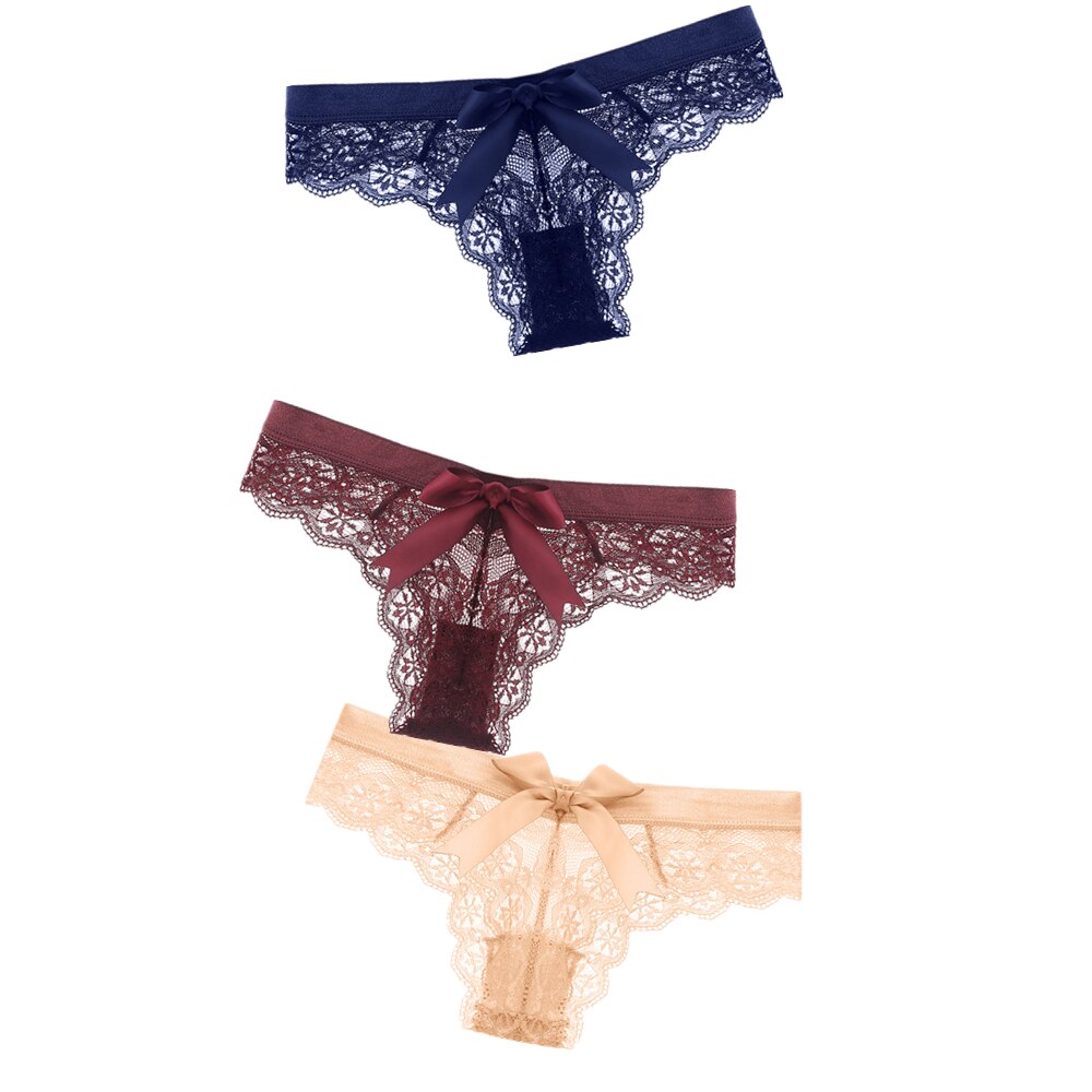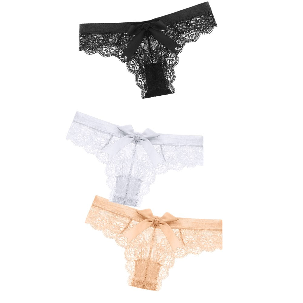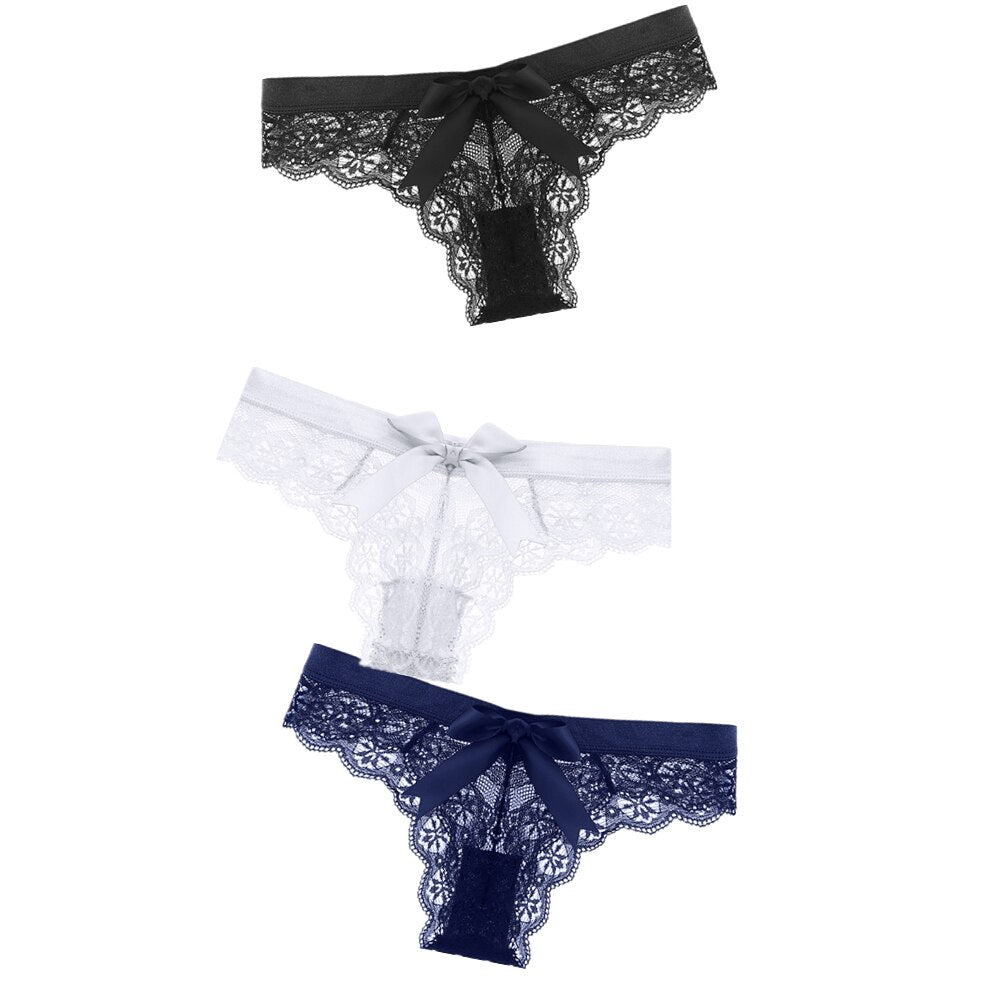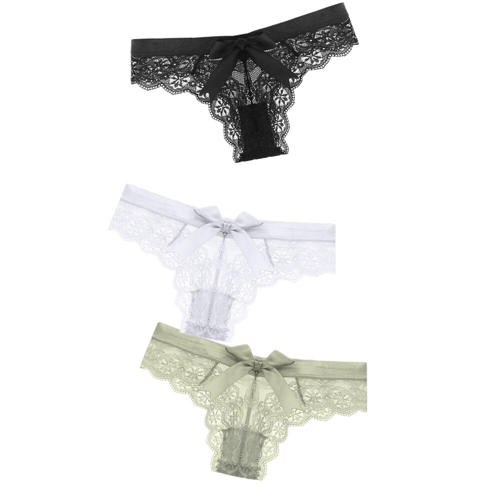 Black/White Sexy String Lace Underwear Women Back Bow Panties Women G String T-back Thong Transparent Lingerie Cute Panties