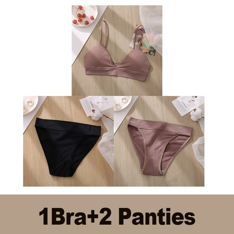 Bra Set Women's Underwear Push Up Bras Sexy Bralette Seamless Brassiere Gather Padded Female Wirefree Intimates Lingerie 2/3PCS
