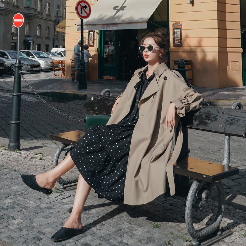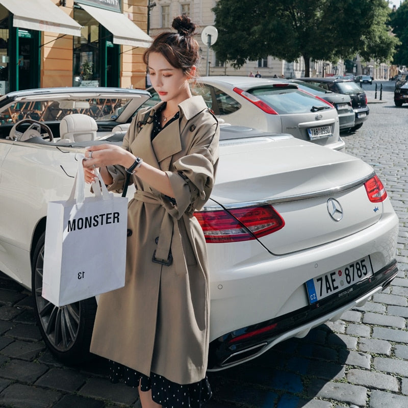 Brand New England Style Double-Breasted Women Trench Coat Long Duster Coat with Belt for Lady Outerwear Spring Autumn Female