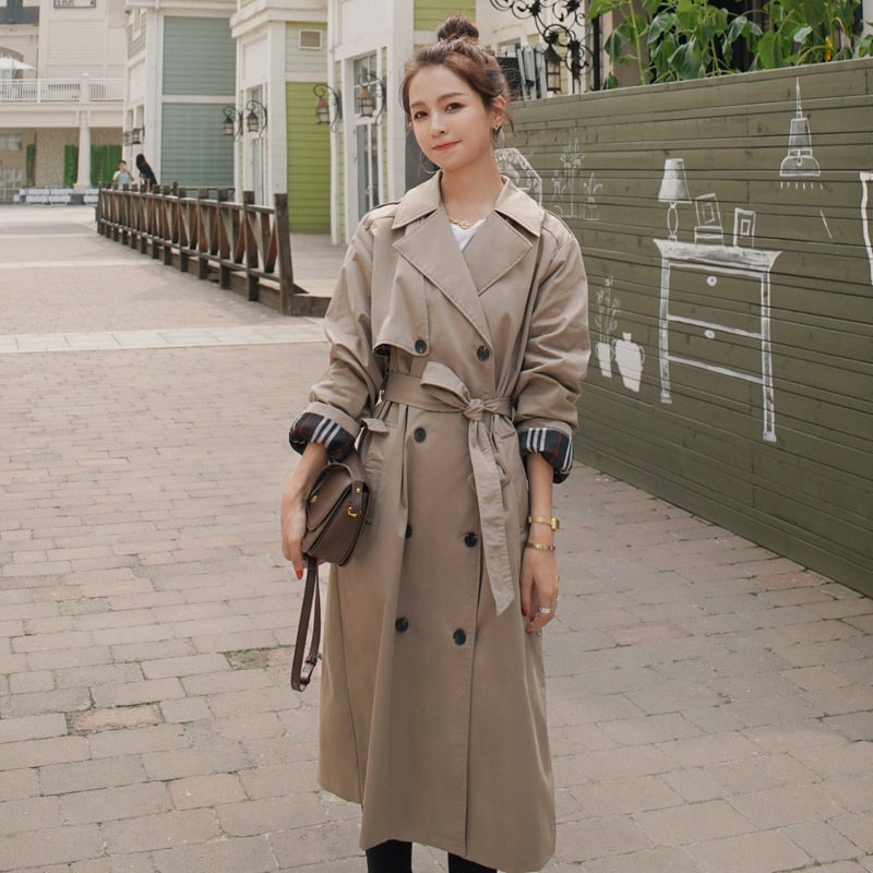 Brand New Fashion Double-Breasted Long Women Trench Coat Office Lady Duster Coat Female Outerwear Black Khaki Quality