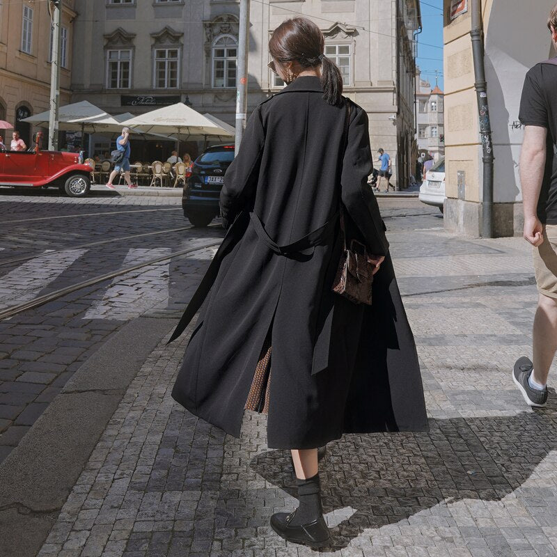 Brand New Fashion Long Black Trench Coat for Women with Belt Waterproof Duster Coat Cloak Lady Female Outerwear Spring Autumn